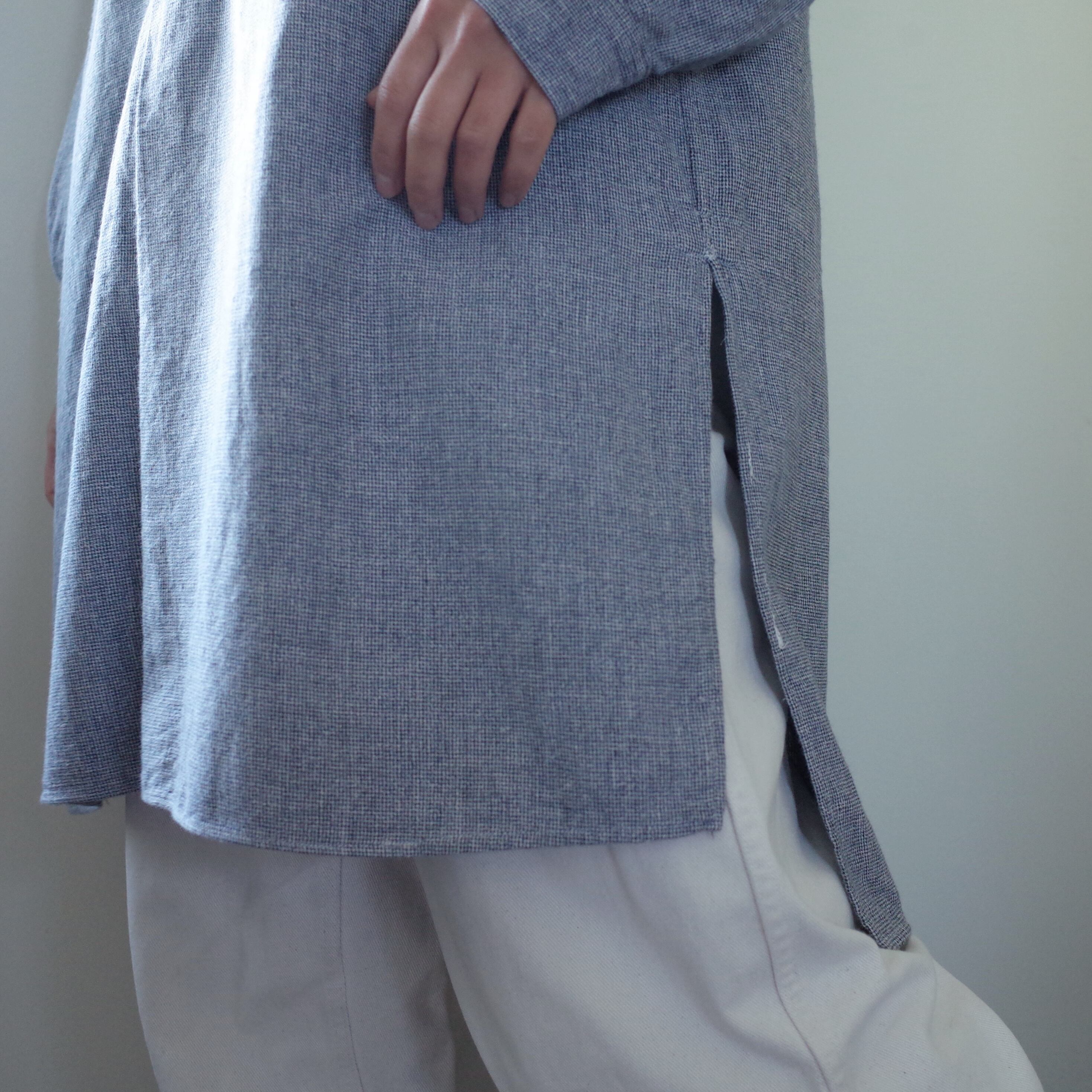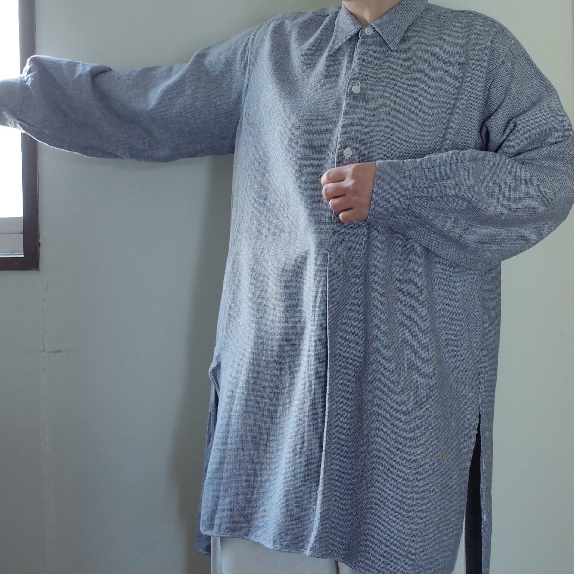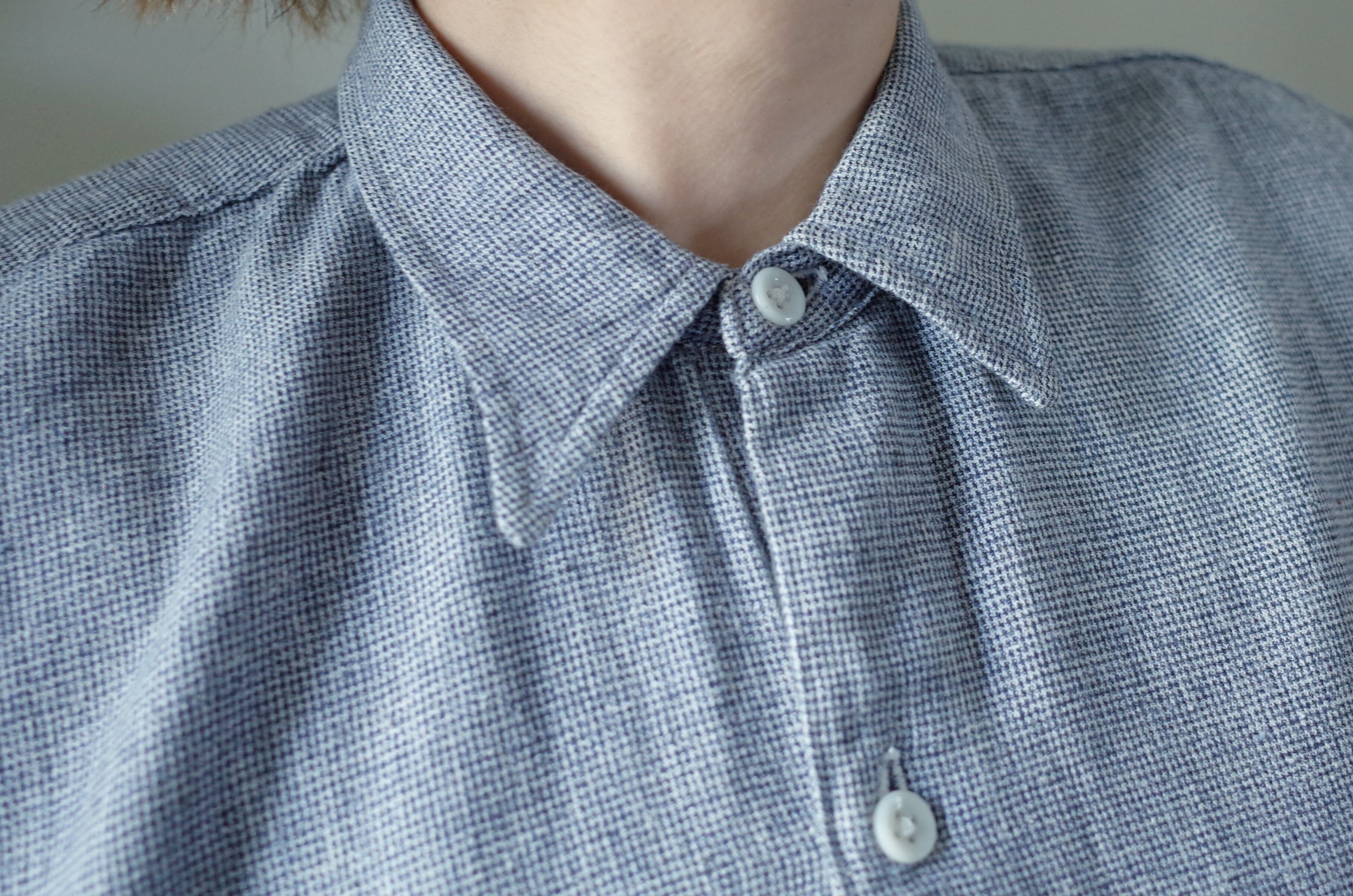 ブルーグレーの色味がとても綺麗で、少しネルっぽさのある柔らかい質感です。