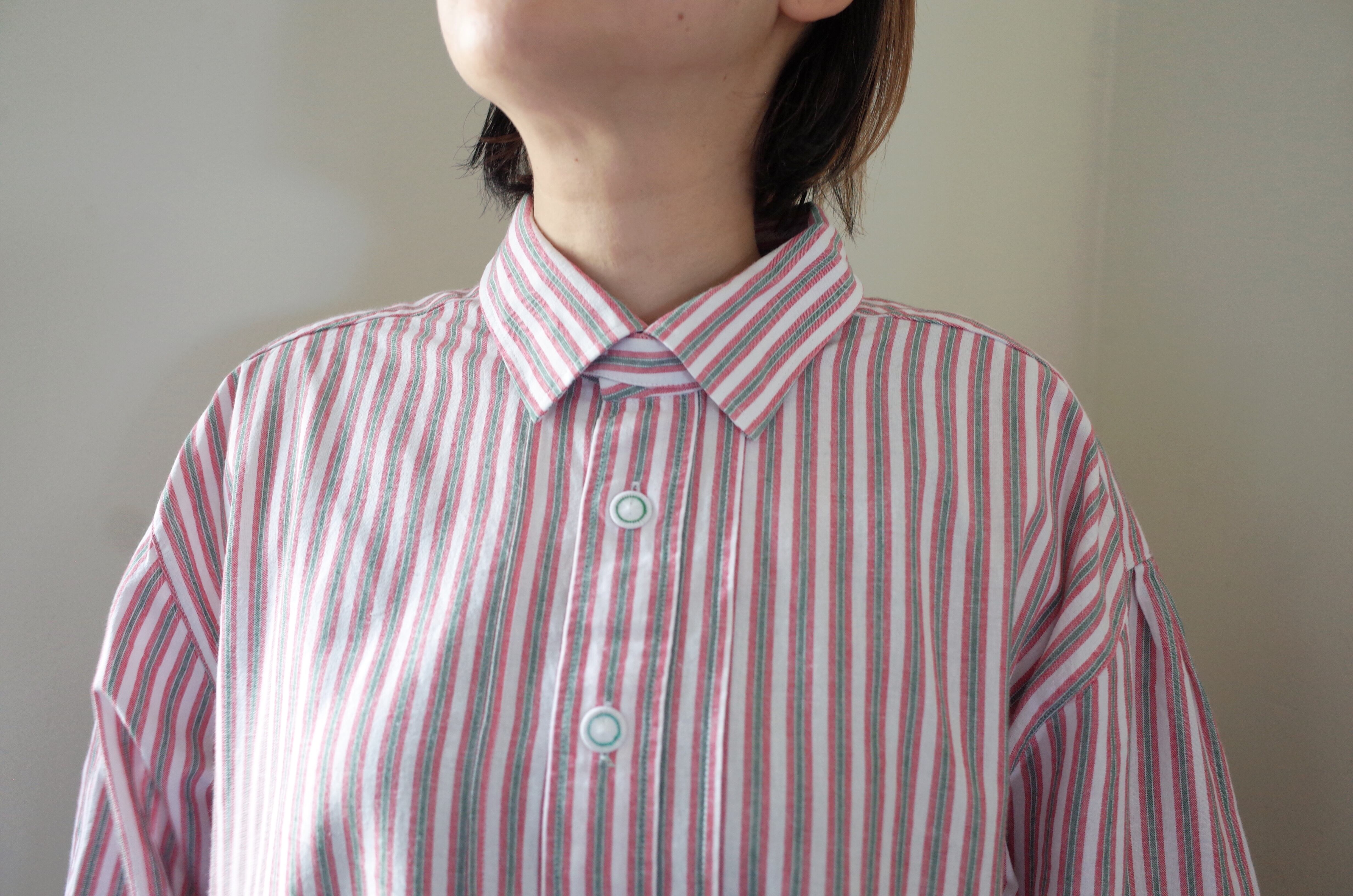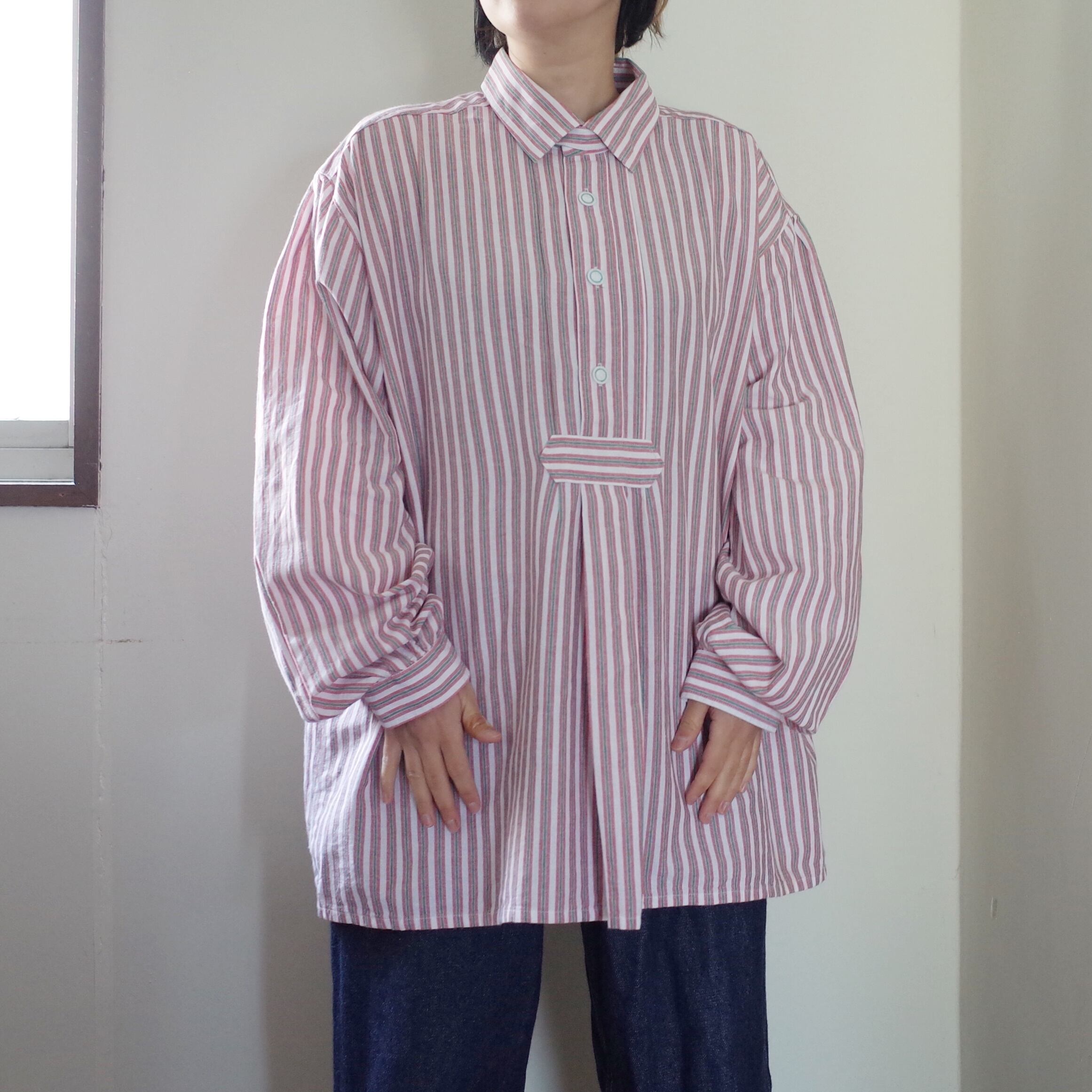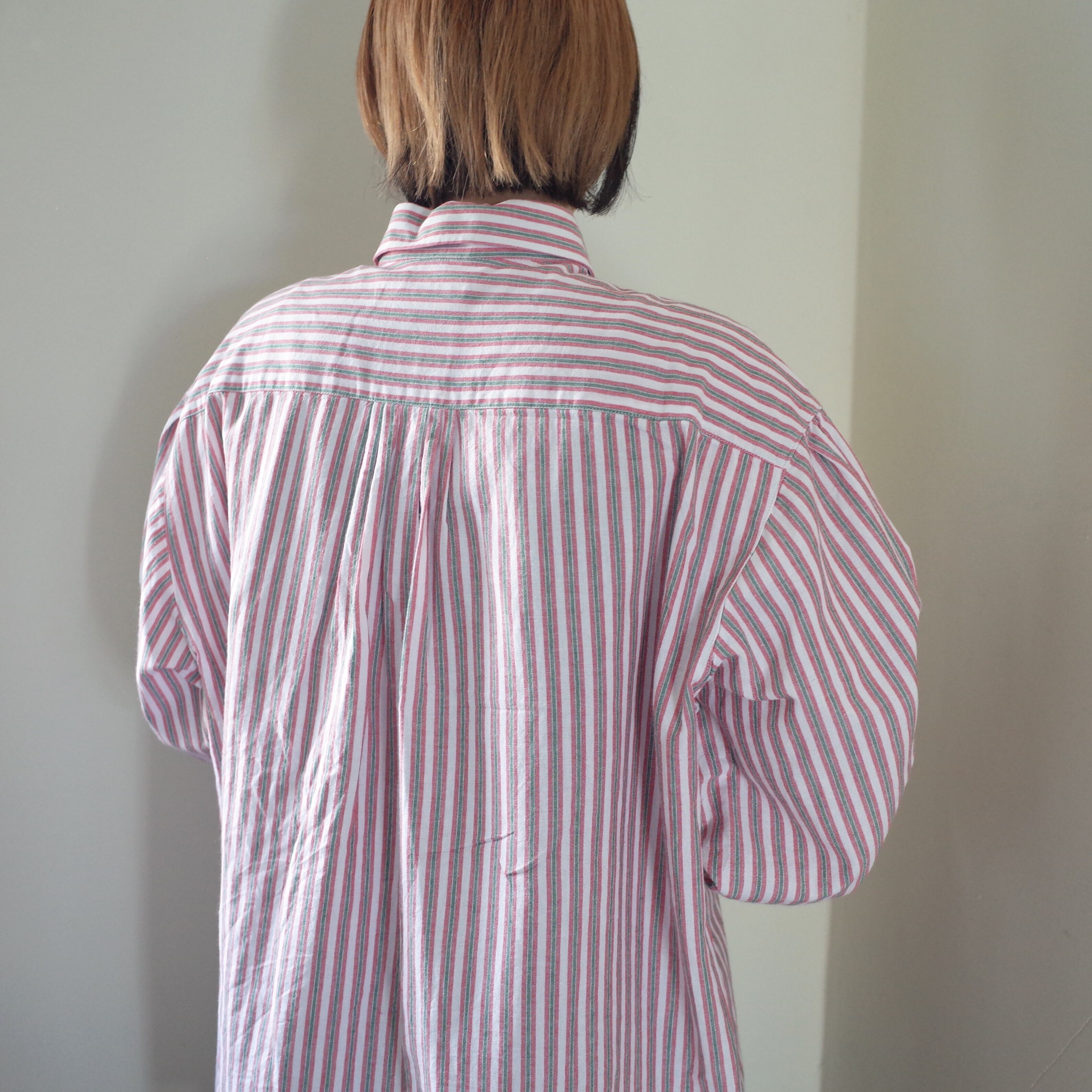 こちらのシャツもあまり古いものではなく90年代ごろのものと推測されますが近年のポリエステル製ではなく赤白緑のストライプ柄のコットン生地で柔らかく着心地が良いです。