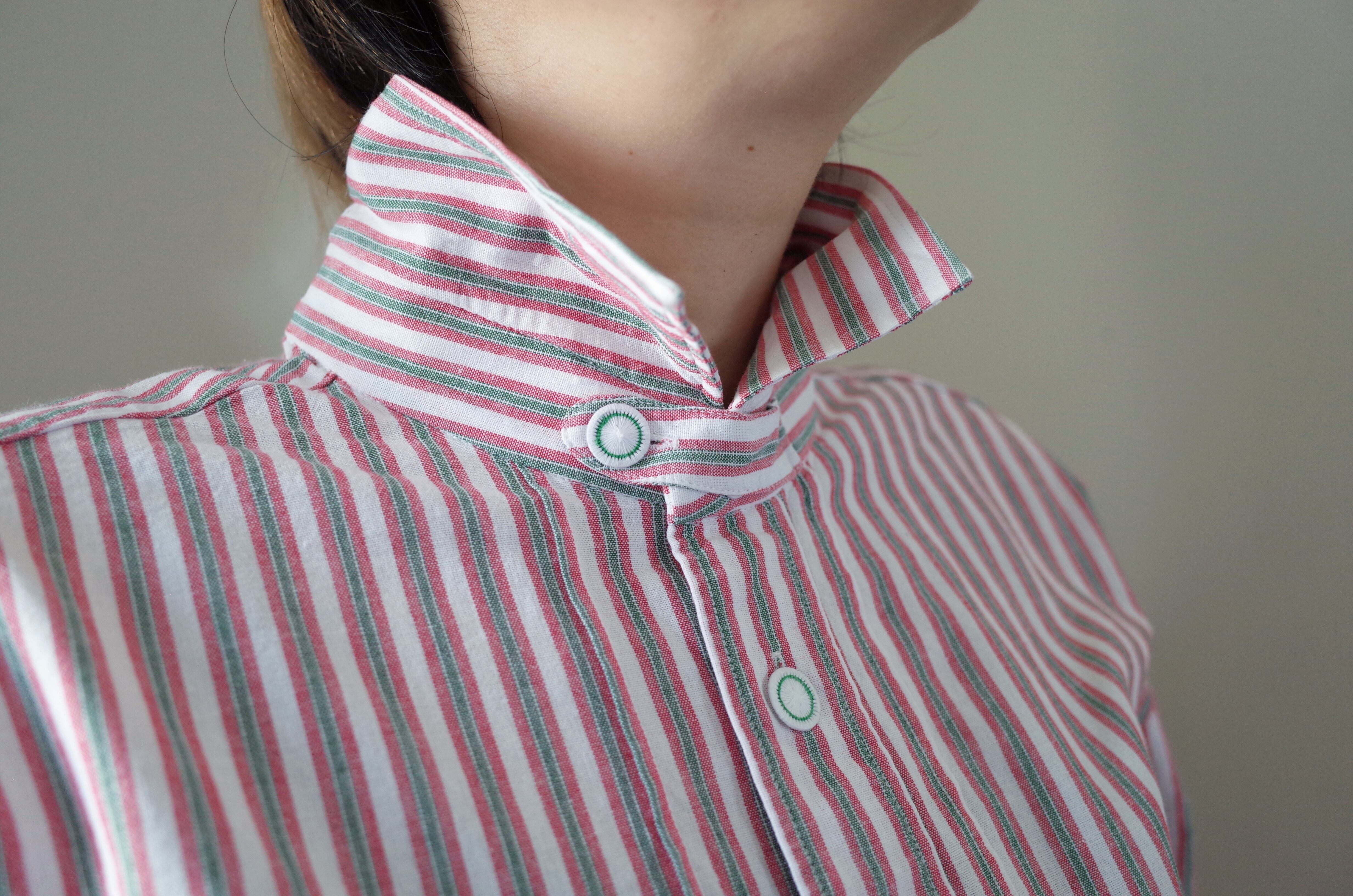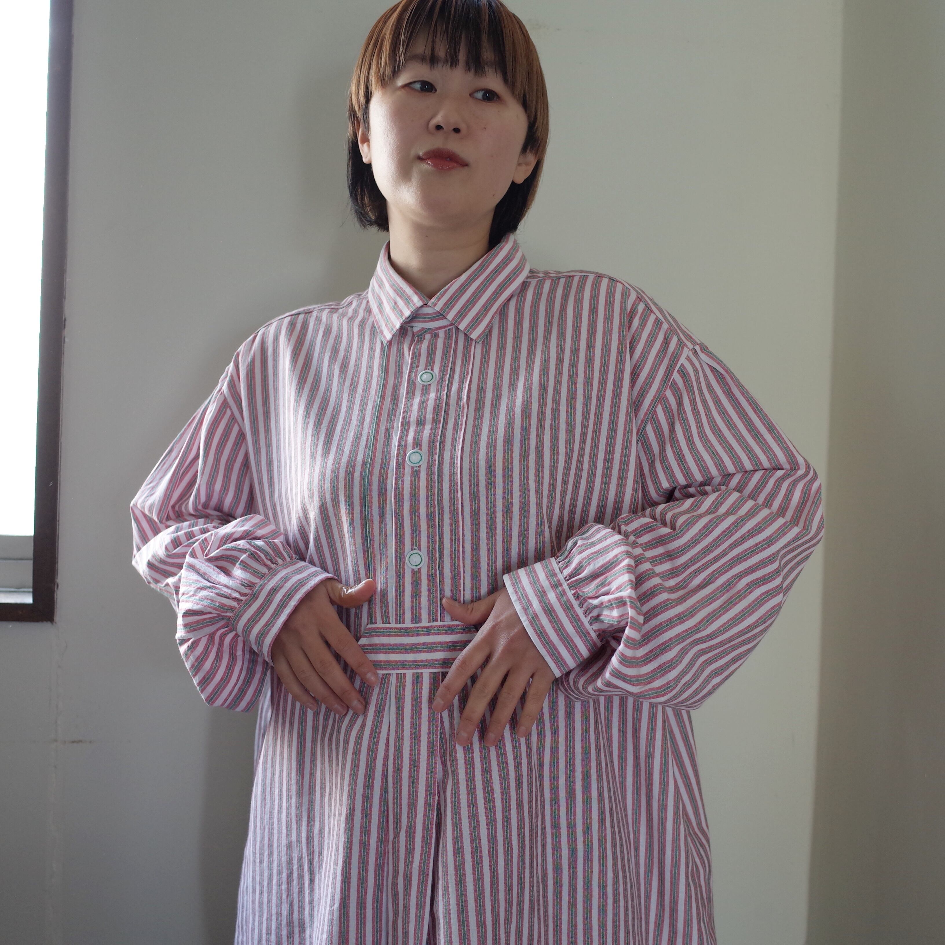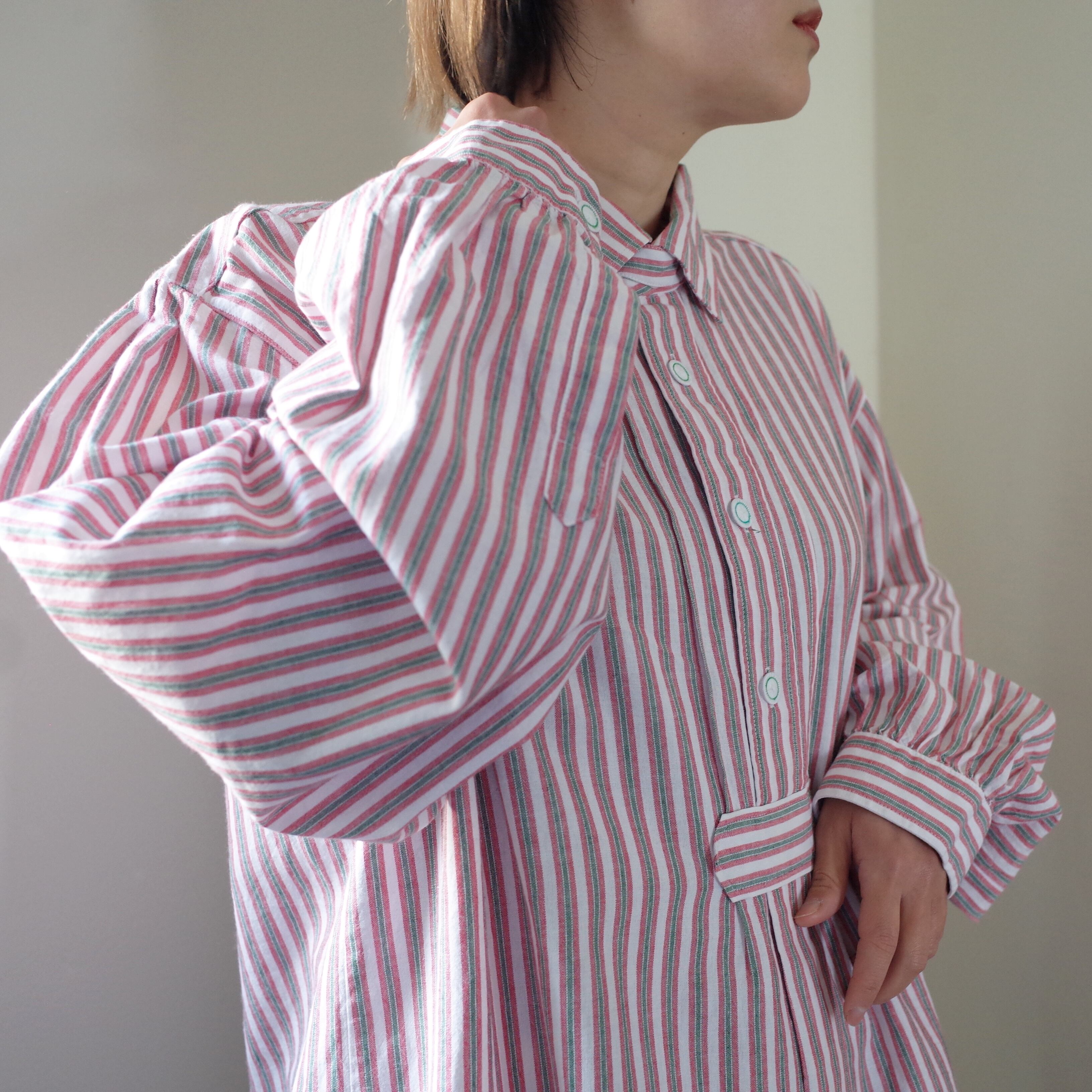 こちらのシャツもあまり古いものではなく90年代ごろのものと推測されますが近年のポリエステル製ではなく赤白緑のストライプ柄のコットン生地で柔らかく着心地が良いです。