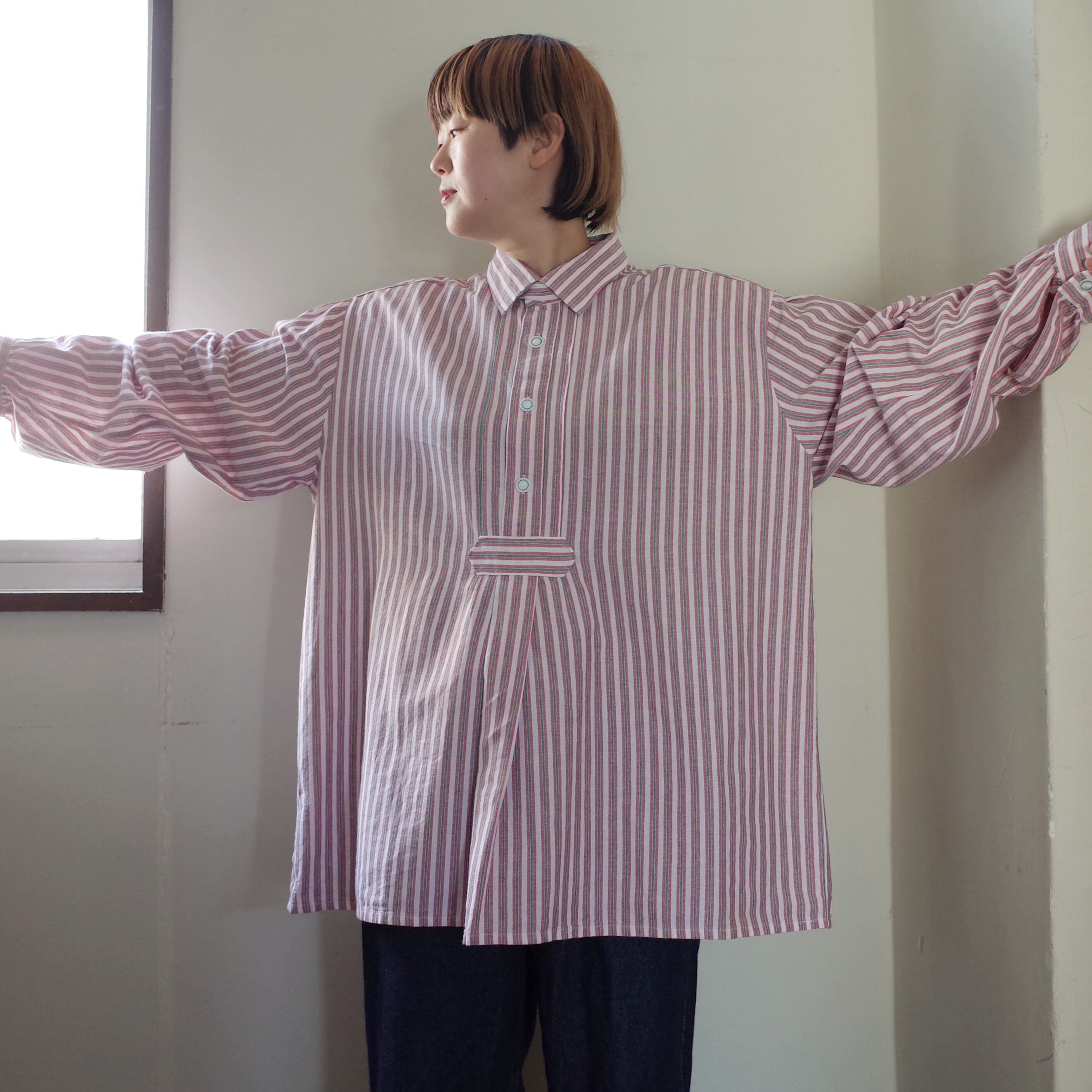 男性用のシャツでゆったりとした作りになっています。