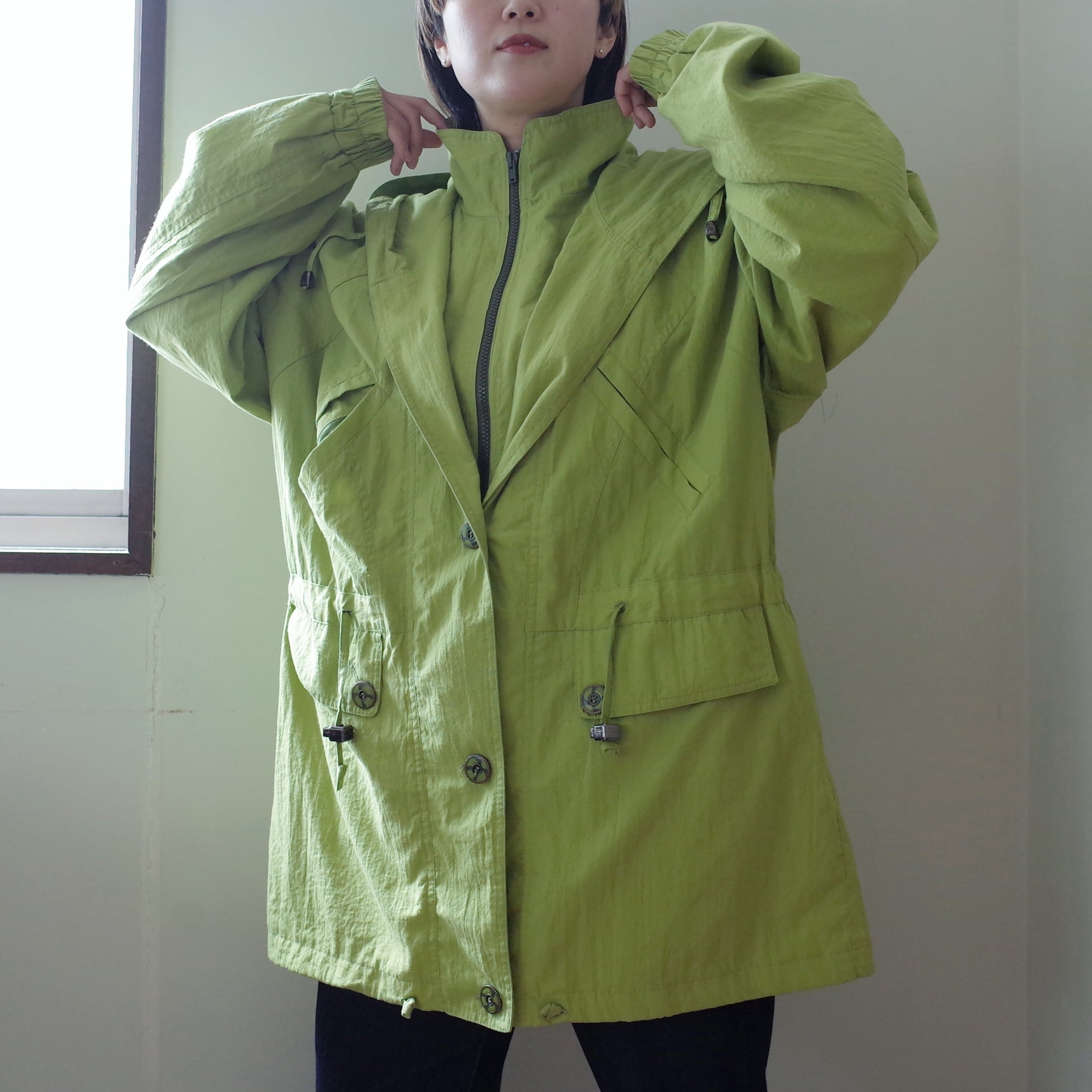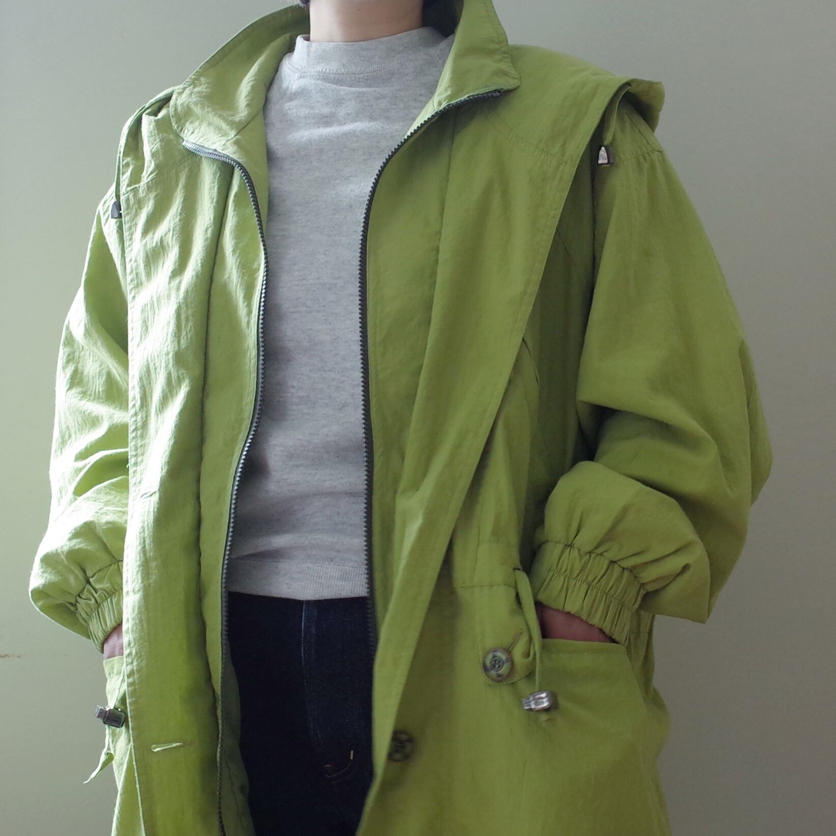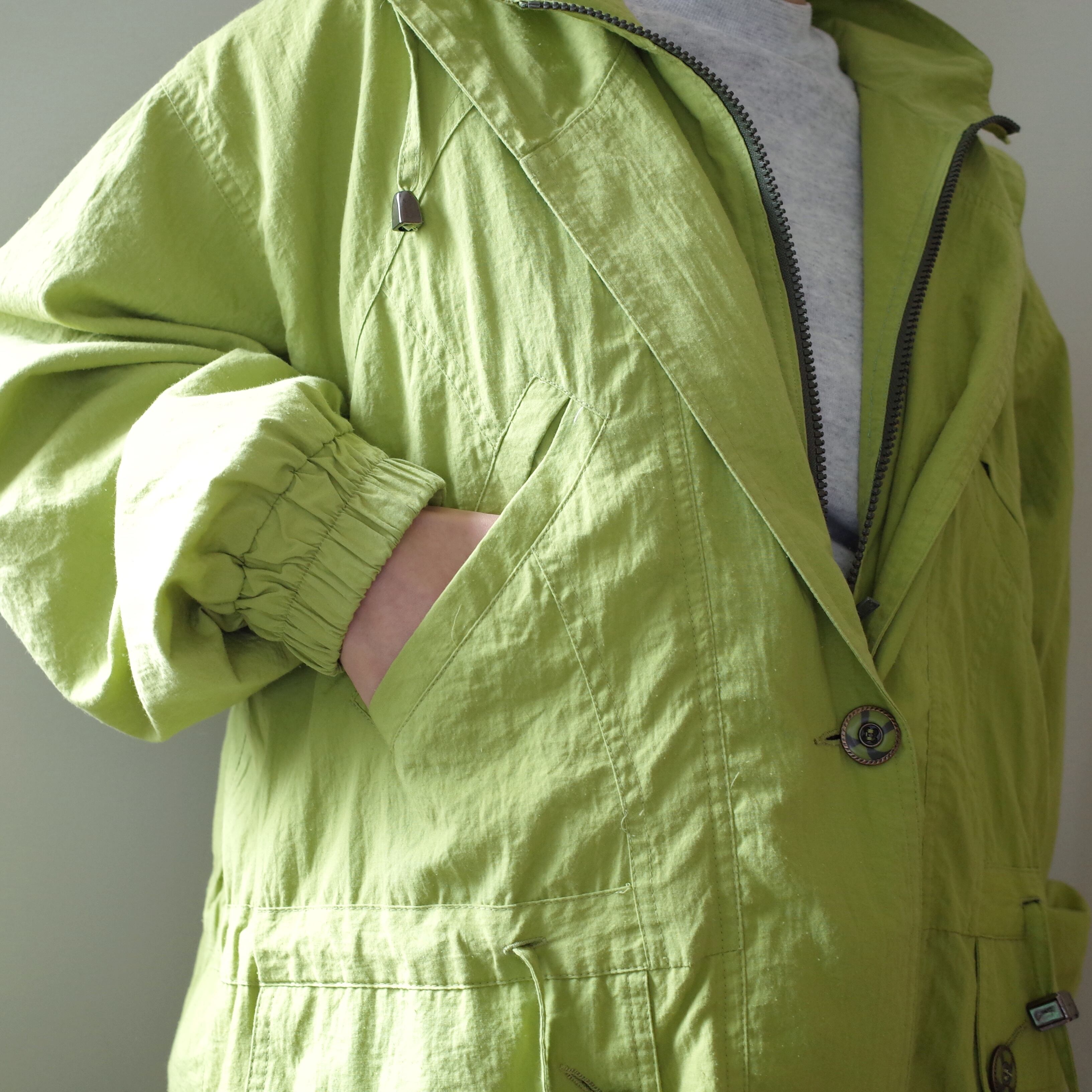 Yellow green spring cotton parka 黄緑コットンパーカー