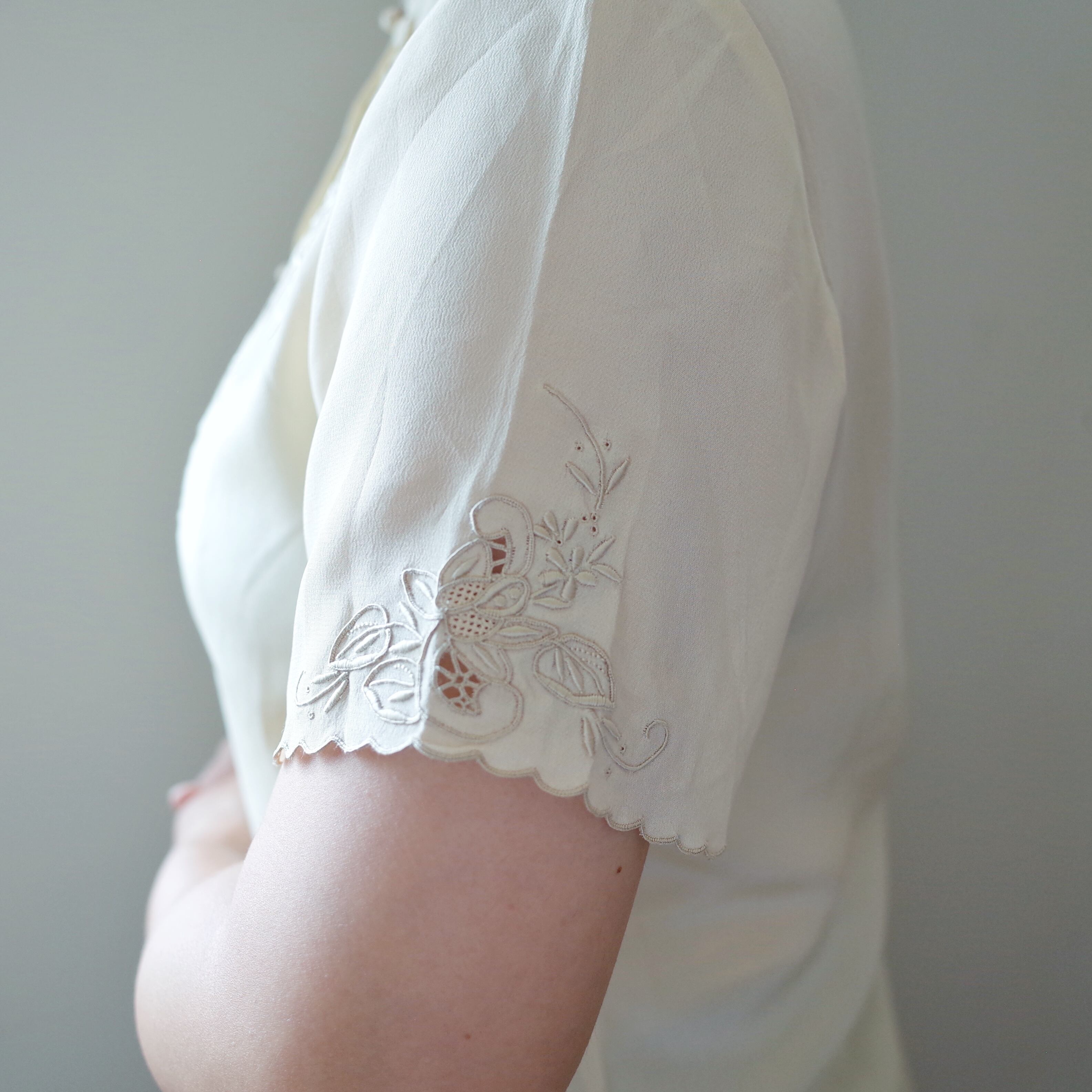 香港で買い付けたマオカラーの汕頭刺繍ブラウス。
