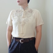 Chinese Hand embroidered blouse 中国 汕頭刺繍 マオカラーブラウス クリームイエロー
