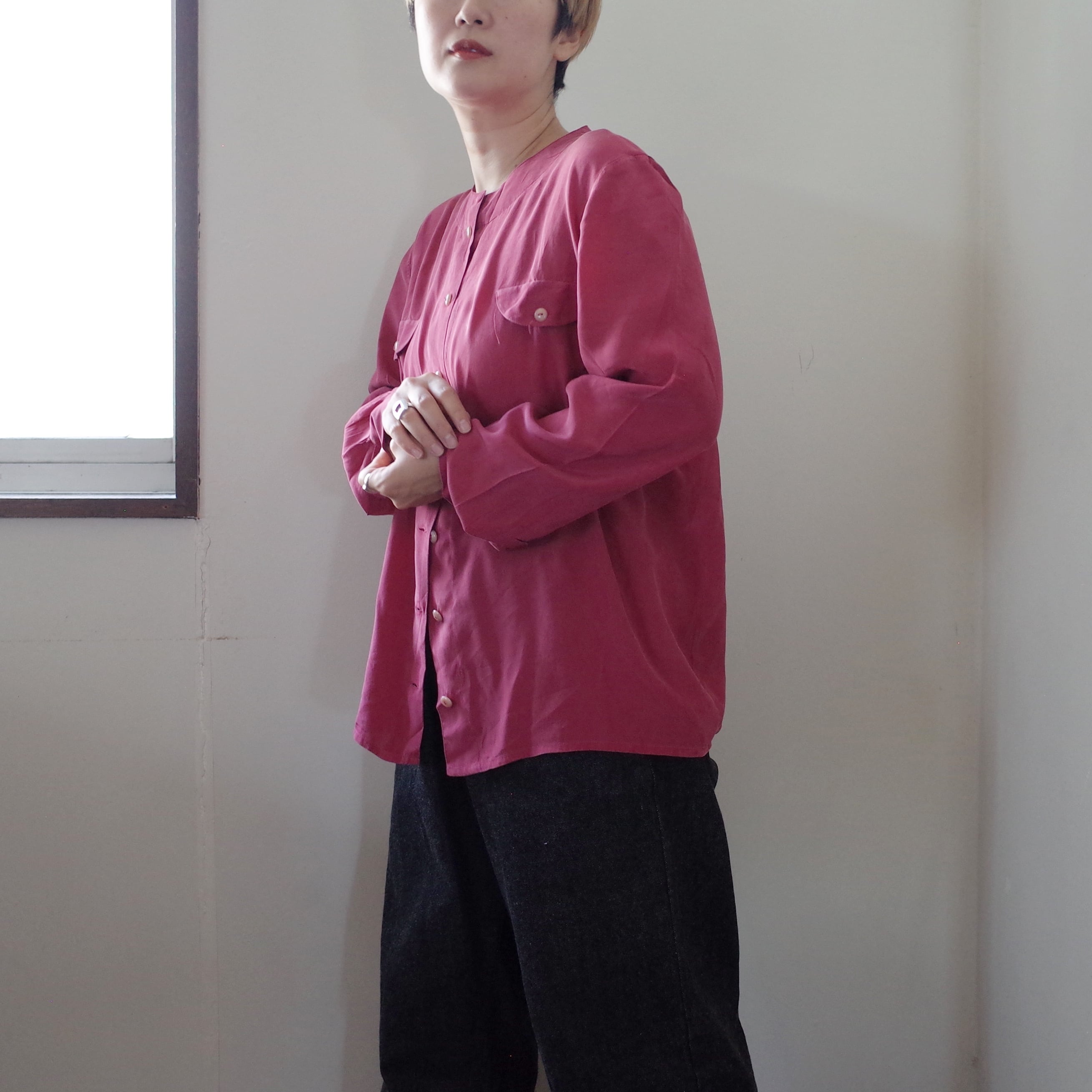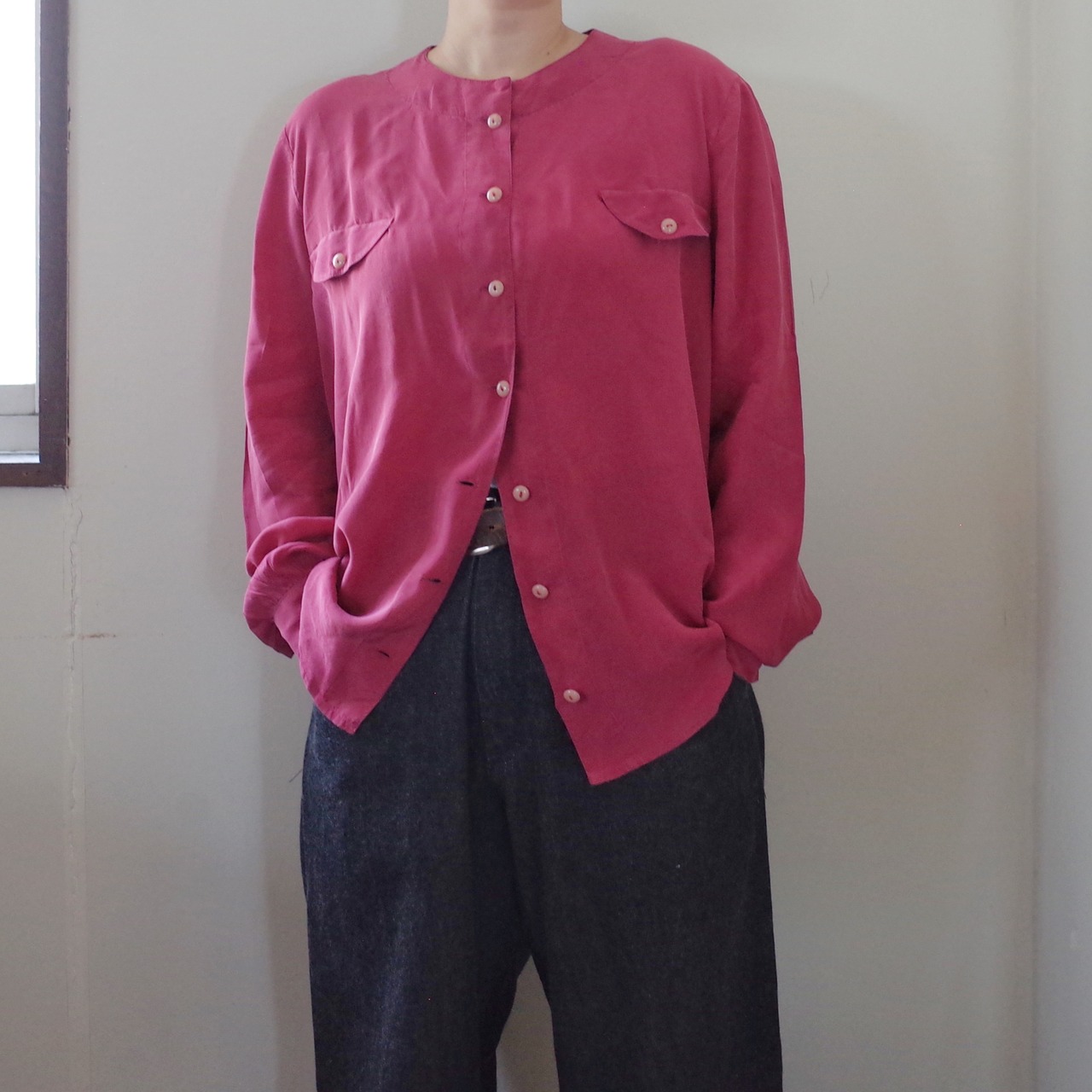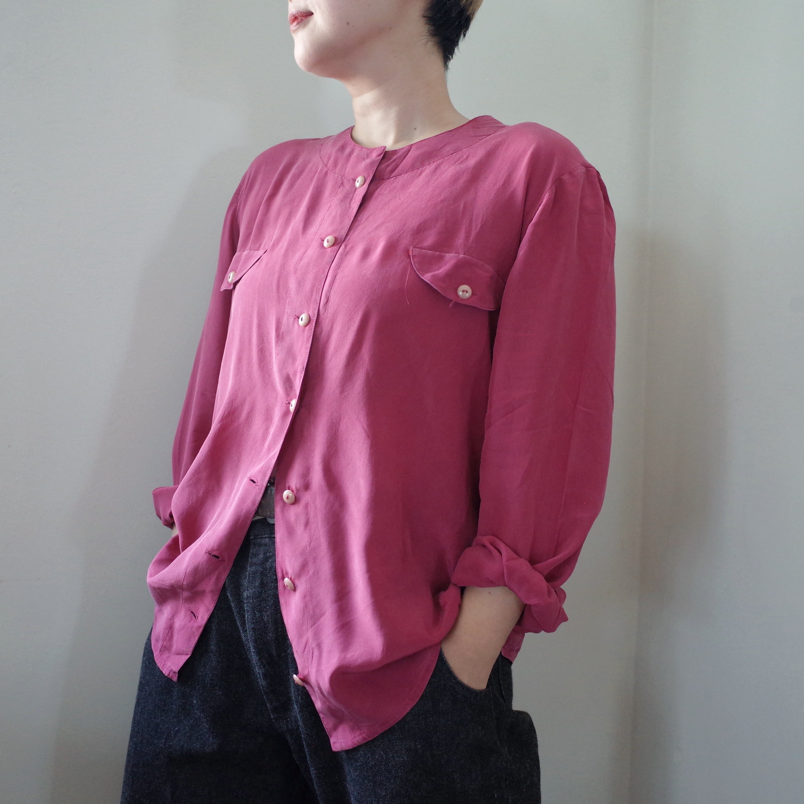 70-80s Italian silk no collar blouse イタリアシルクブラウス