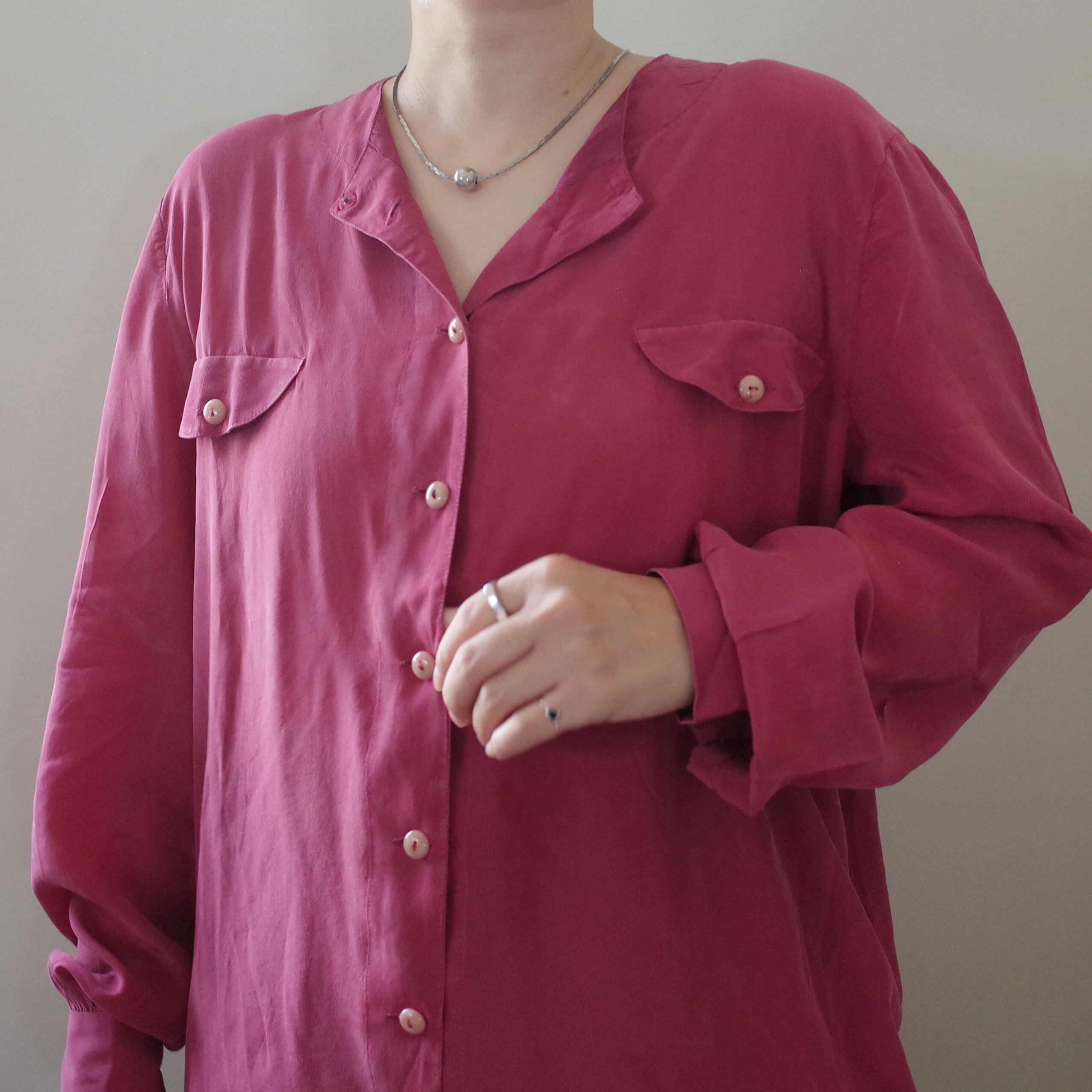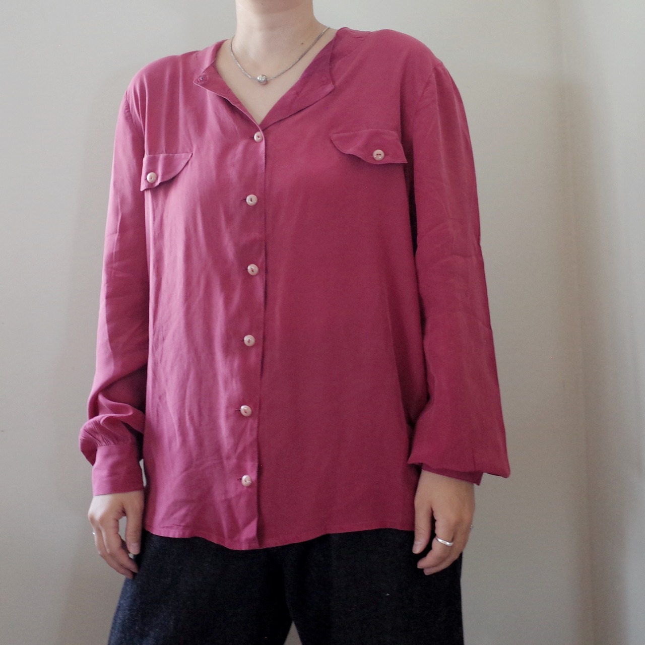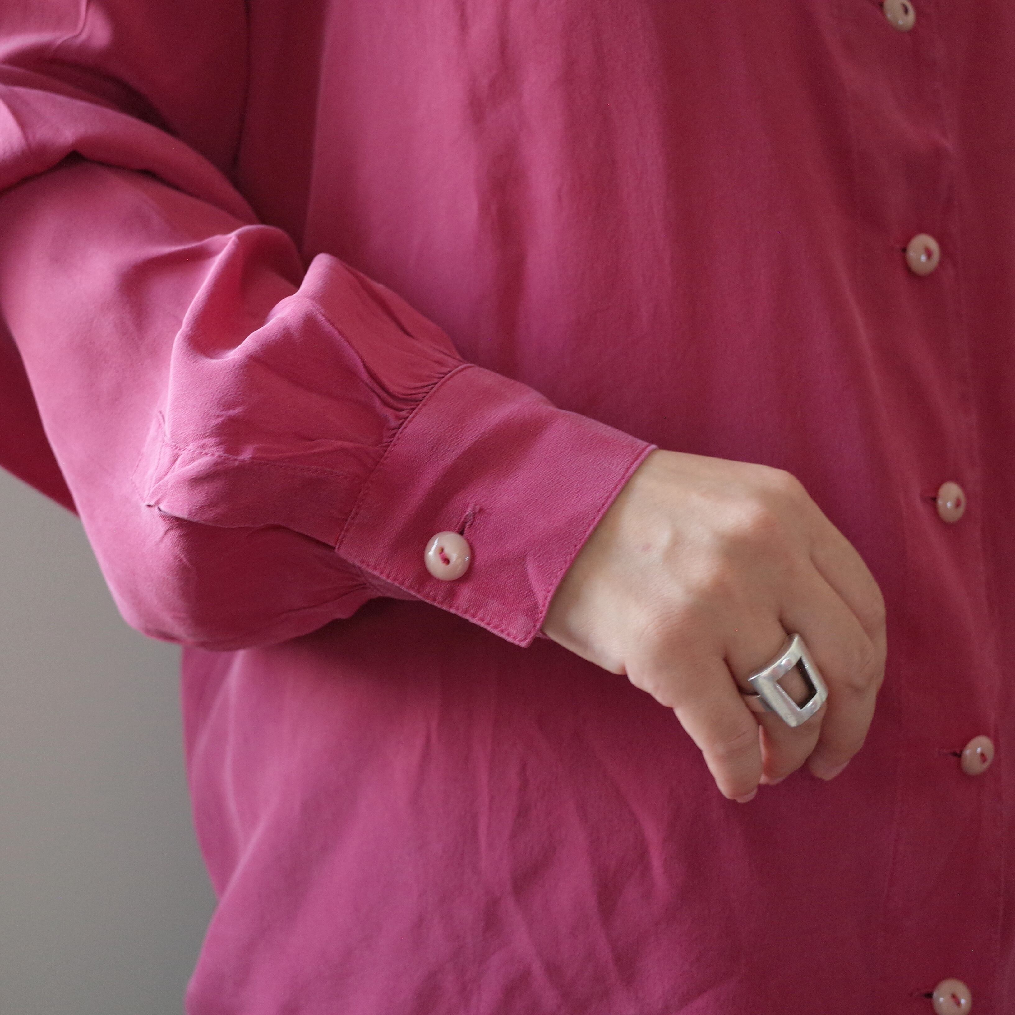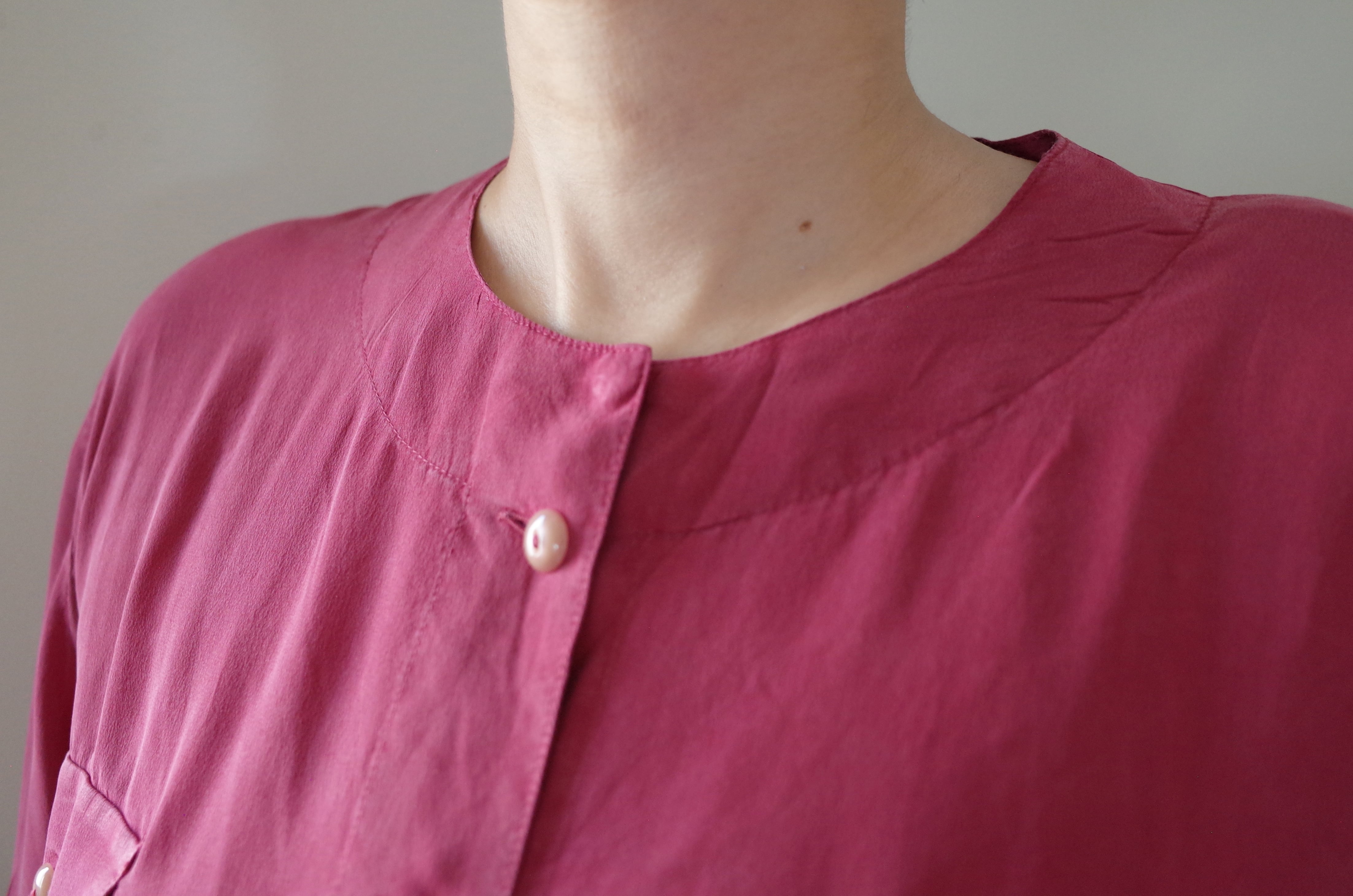 70-80s Italian silk no collar blouse イタリアシルクブラウス