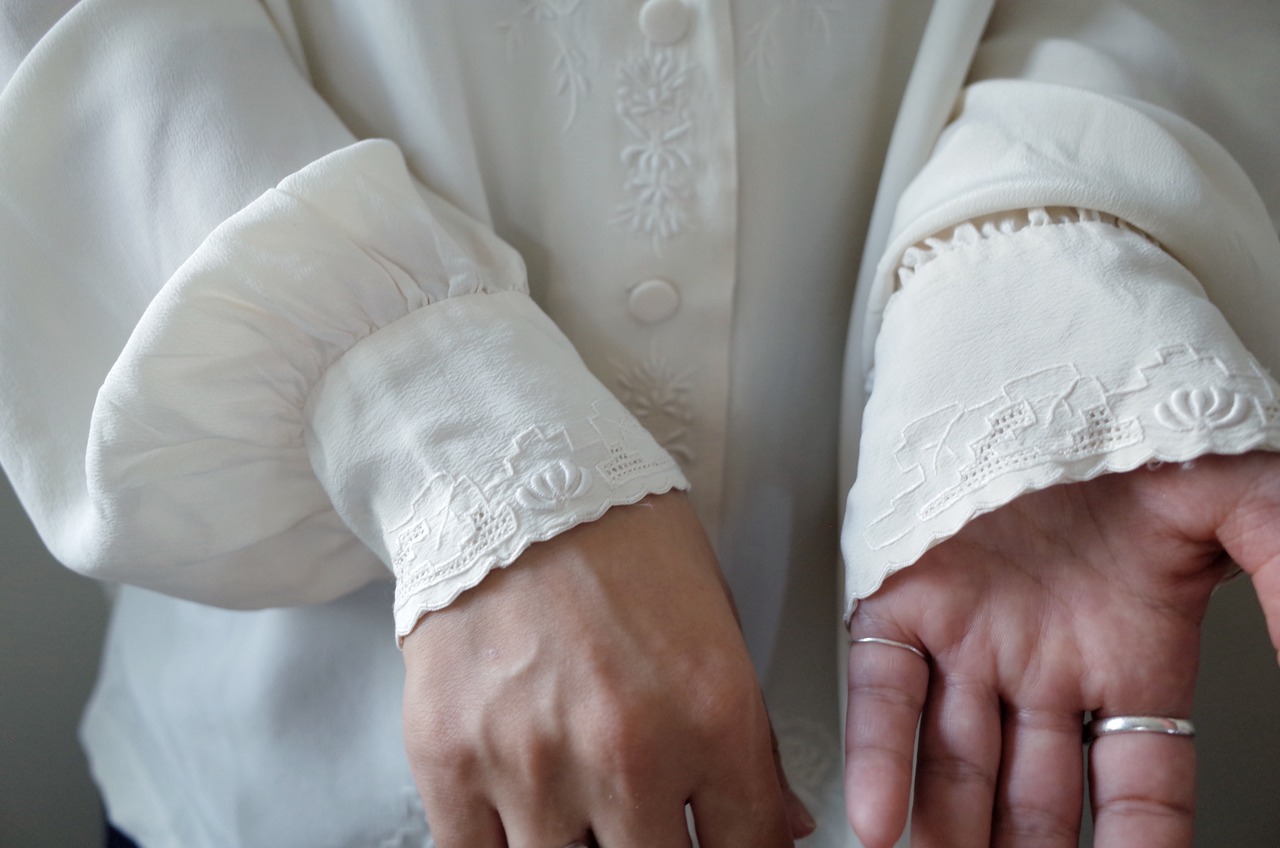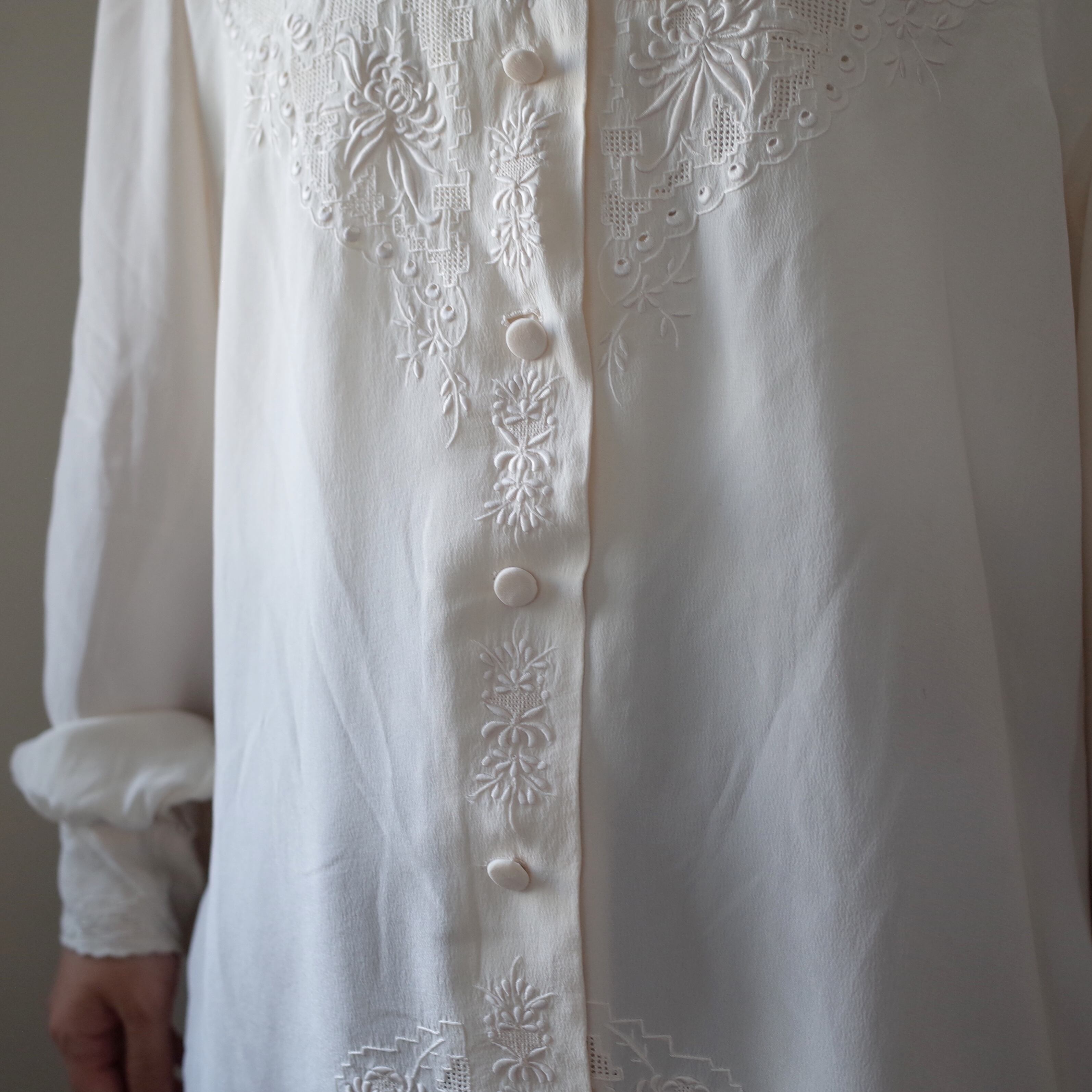 Chinese Hand embroidered silk blouse 中国 汕頭刺繍 ロングスリーブ