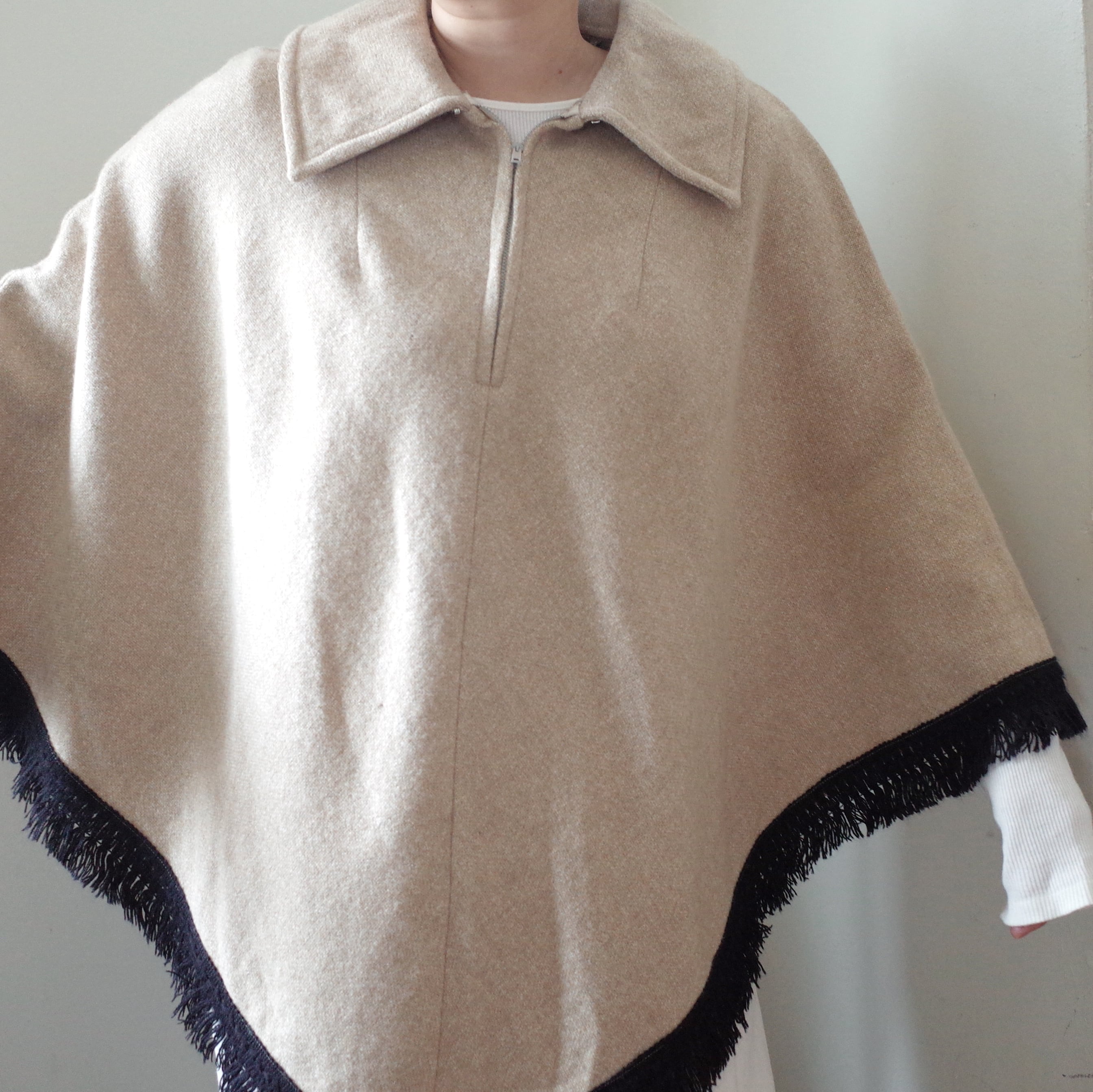 柔らかいベージュのベースカラーに黒いフリンジがよく映え、
