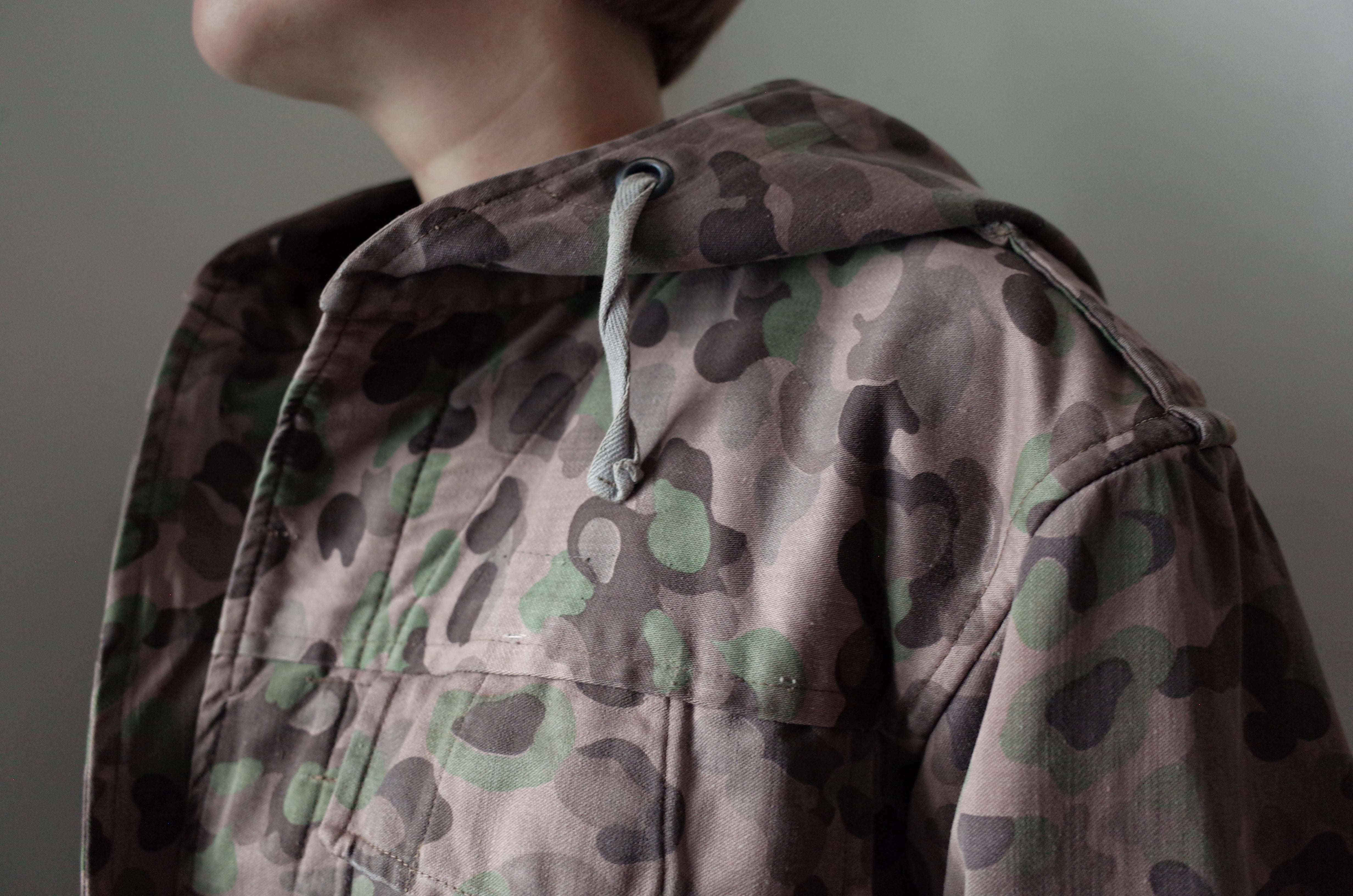 特異な迷彩柄は目を惹き、色味もオリーブより茶系の色が強いカモフラージュは世界的に見ても珍しい気がするします。