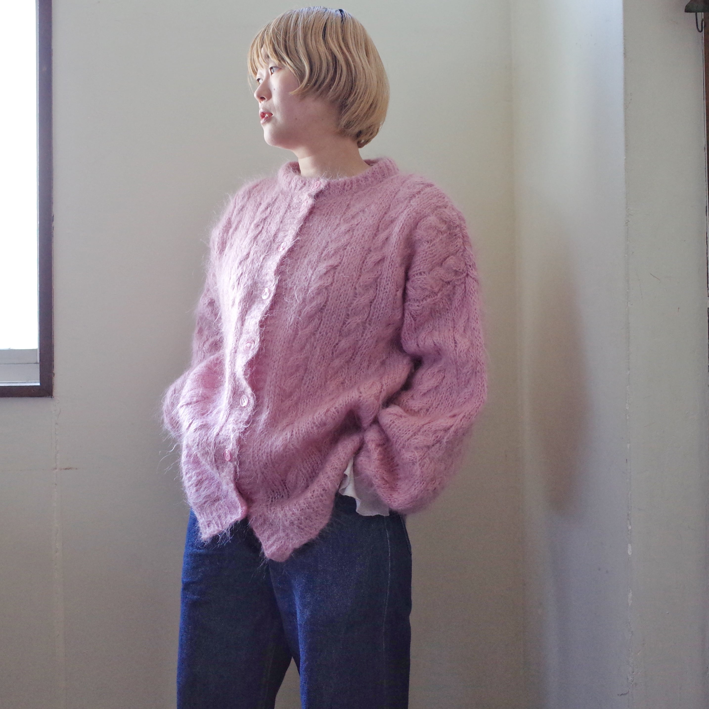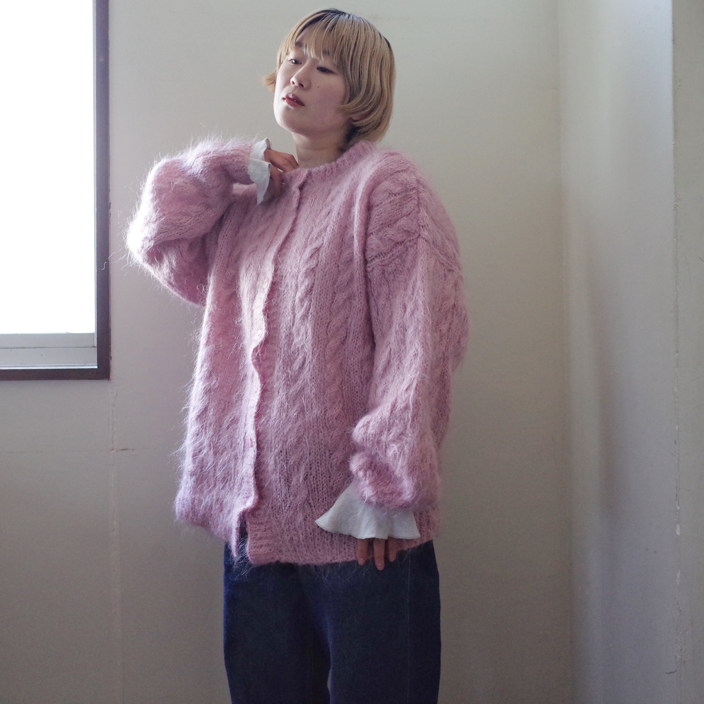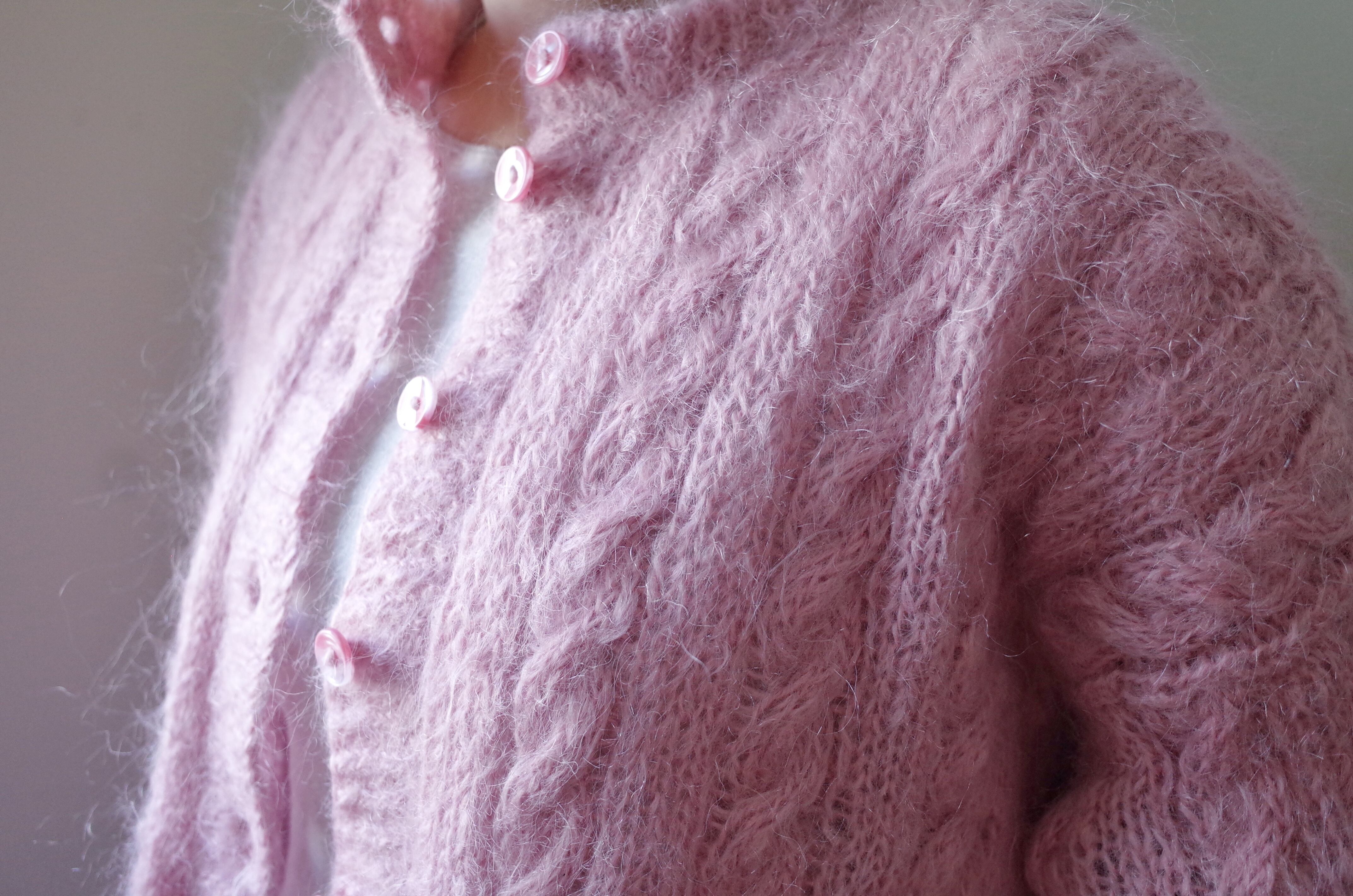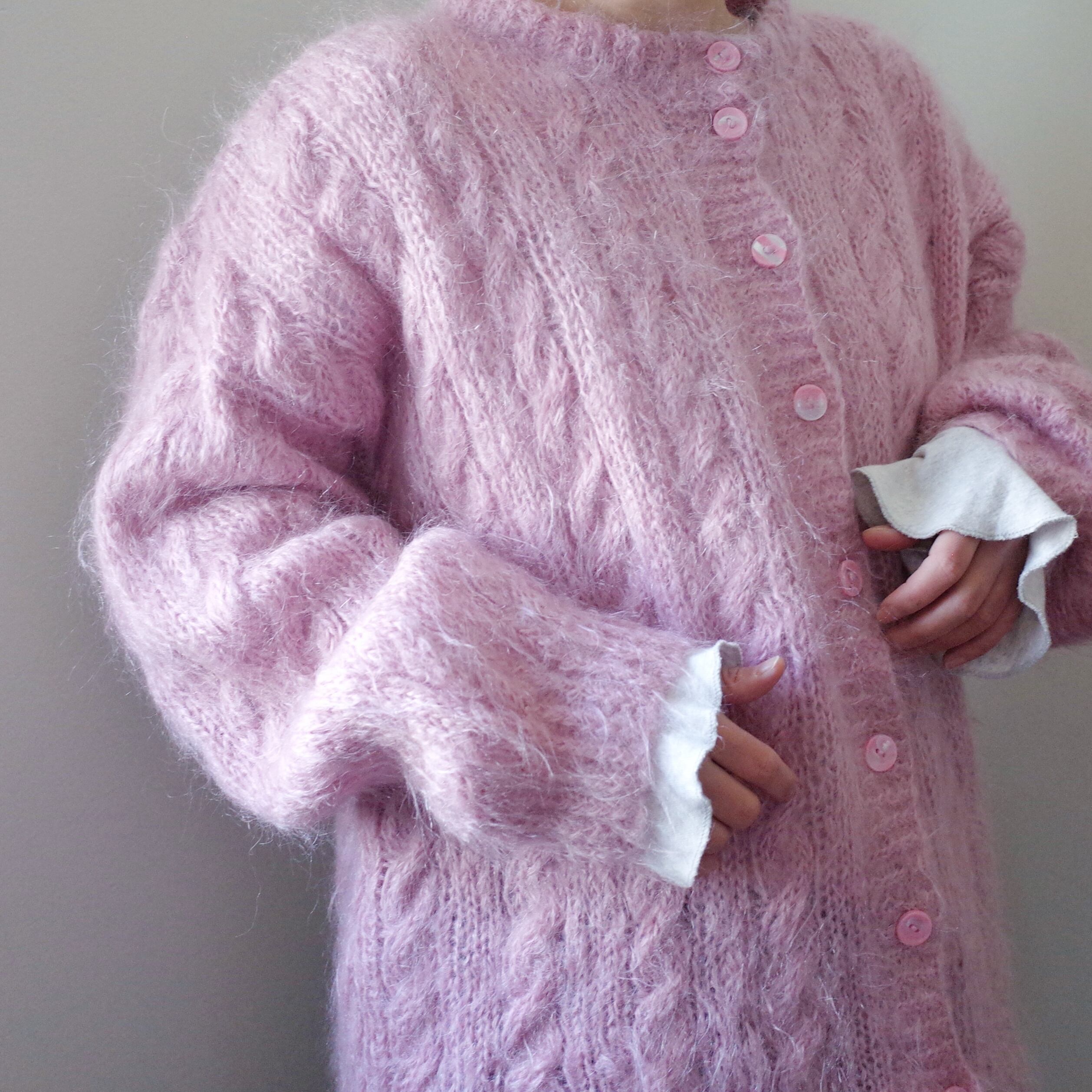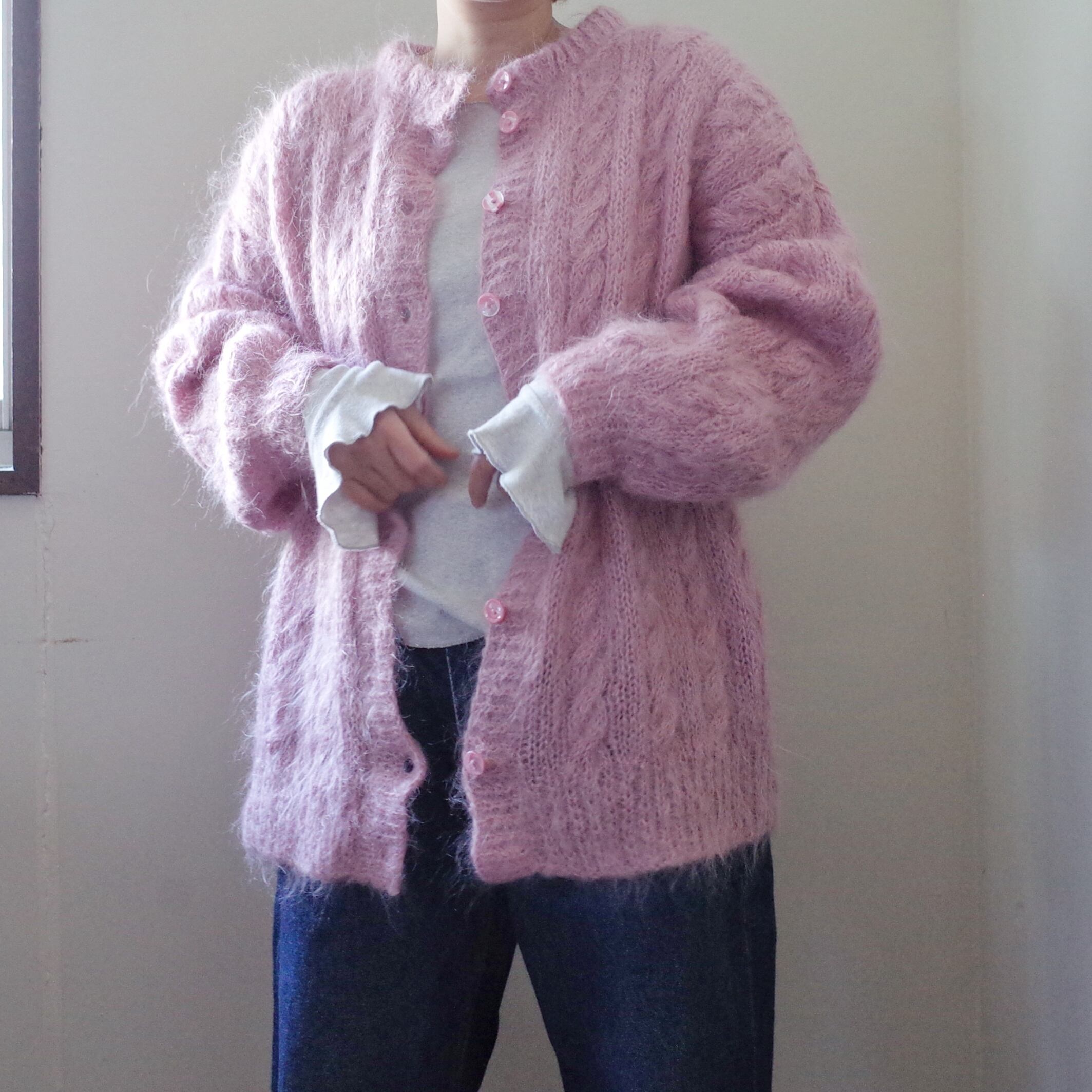 ヨーロッパピンクモヘア手編みカーディガン