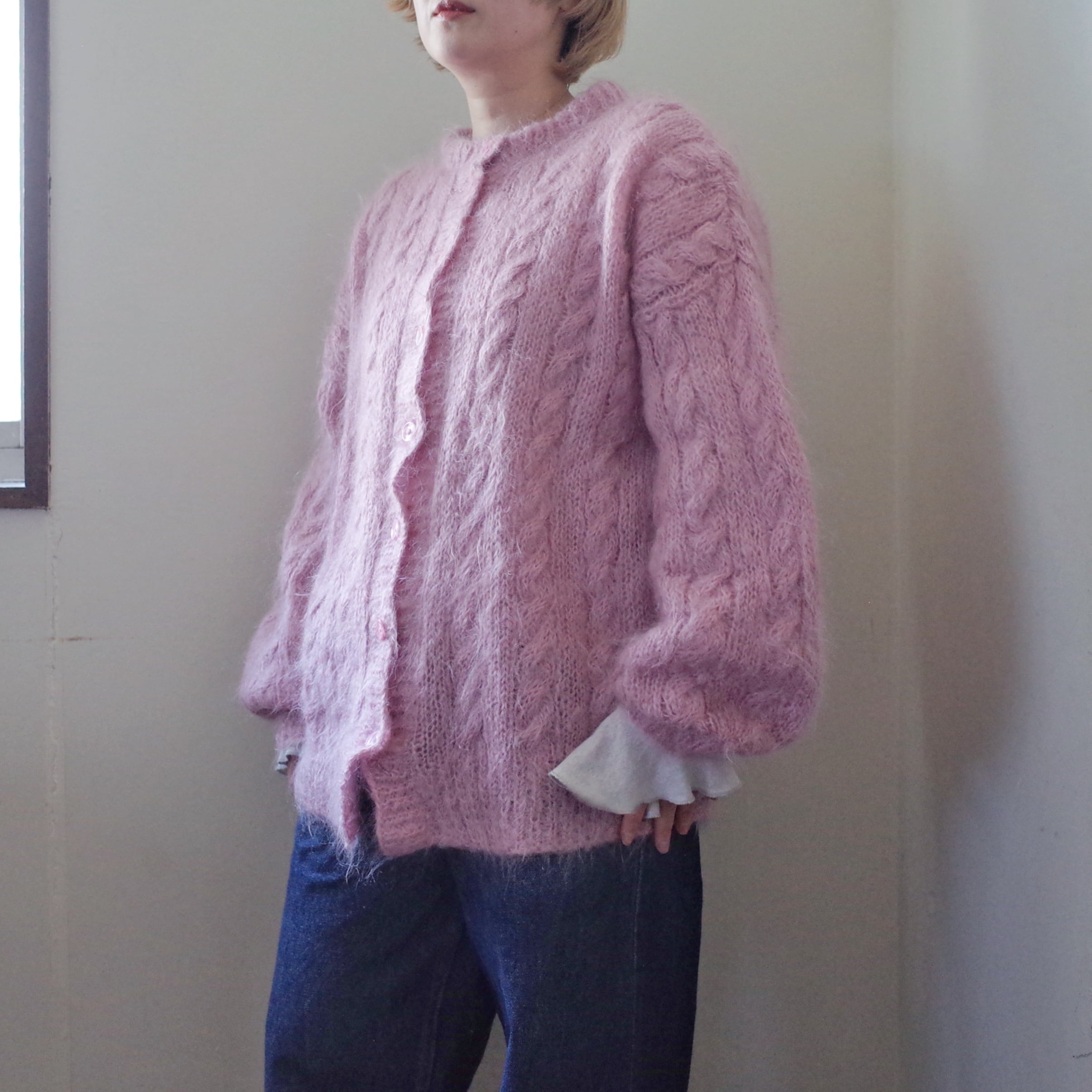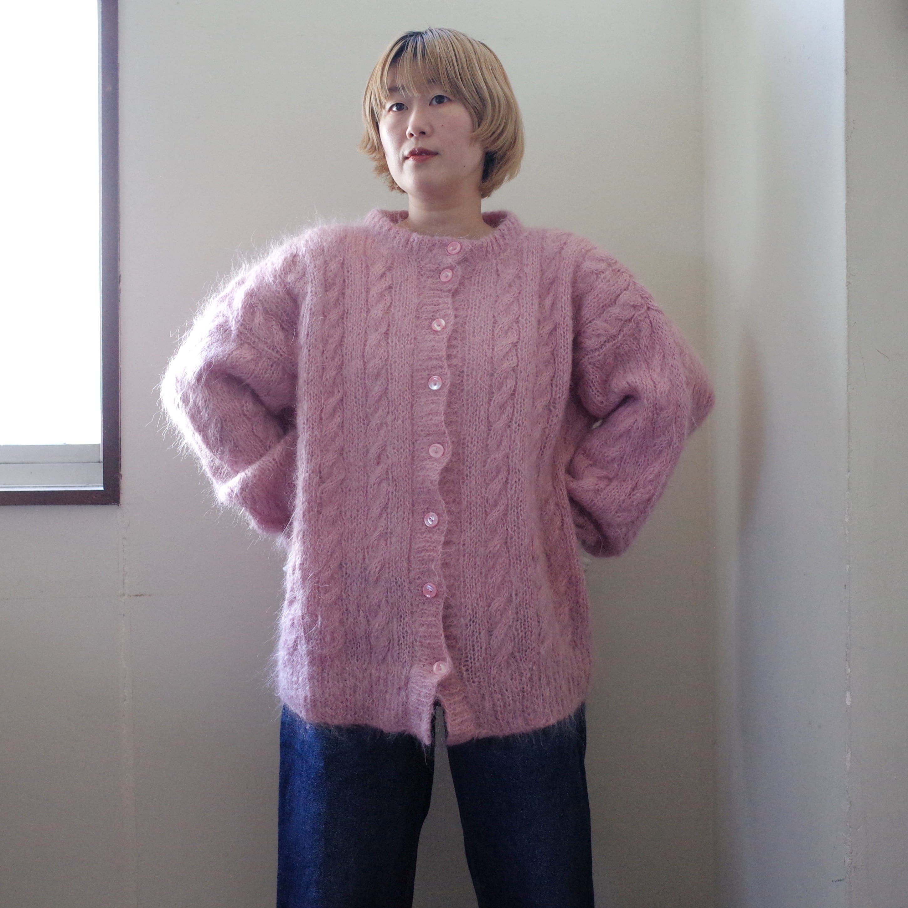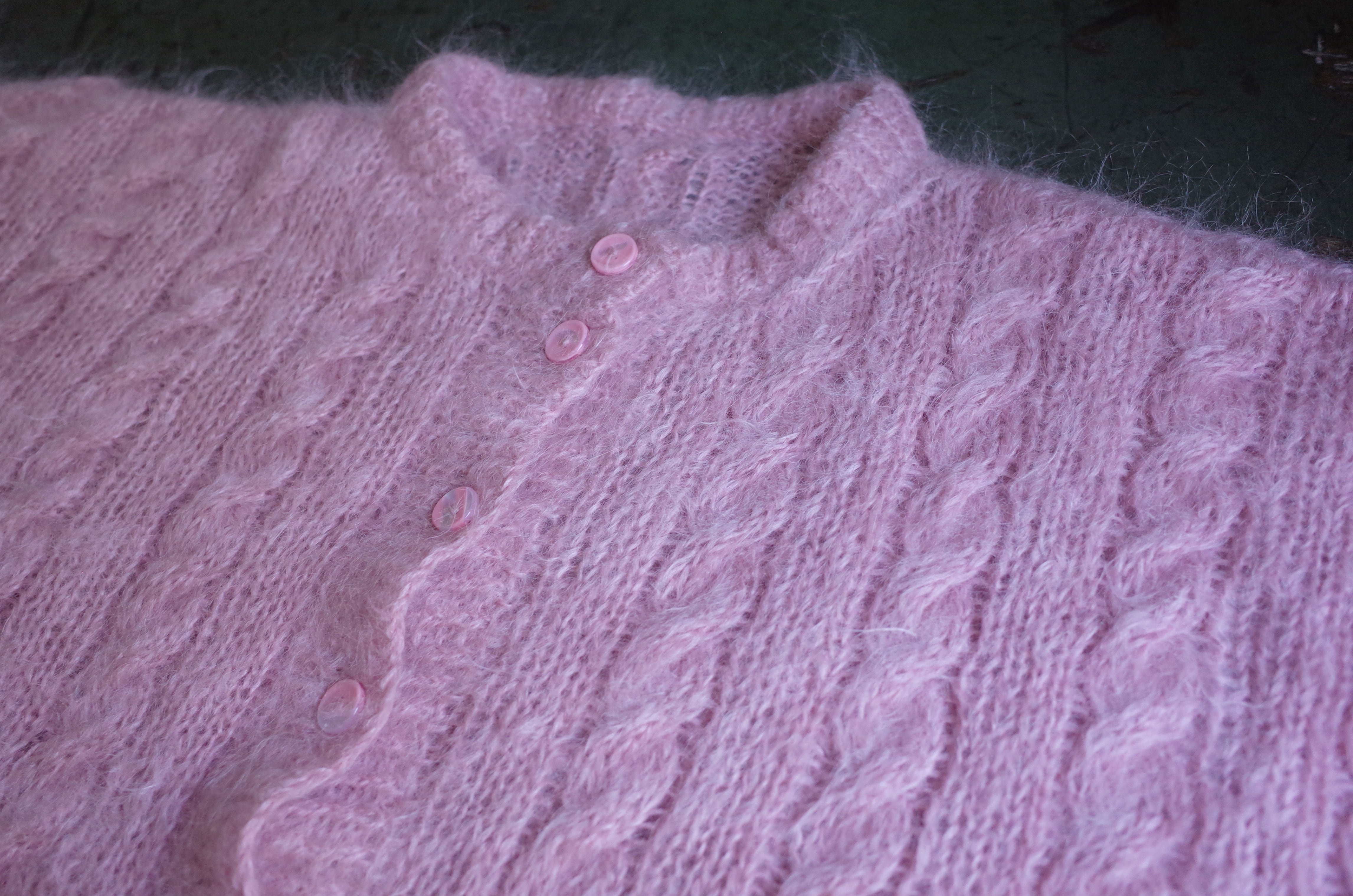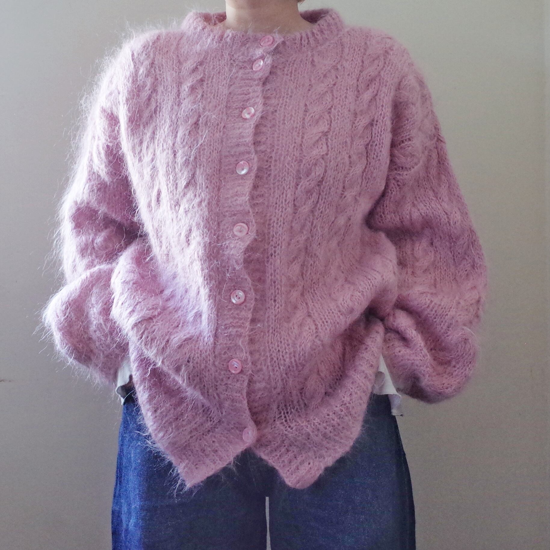 ヨーロッパピンクモヘア手編みカーディガン