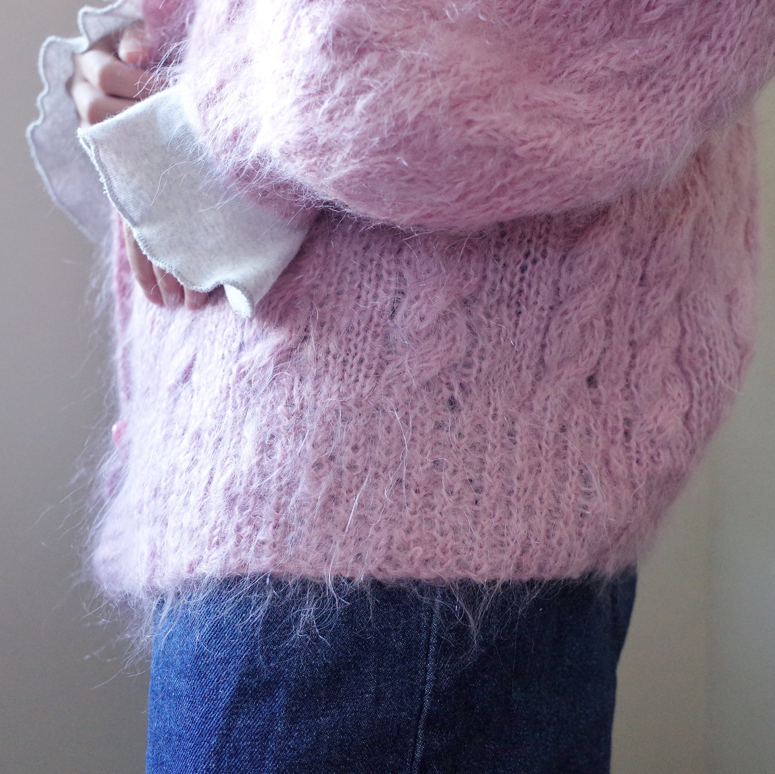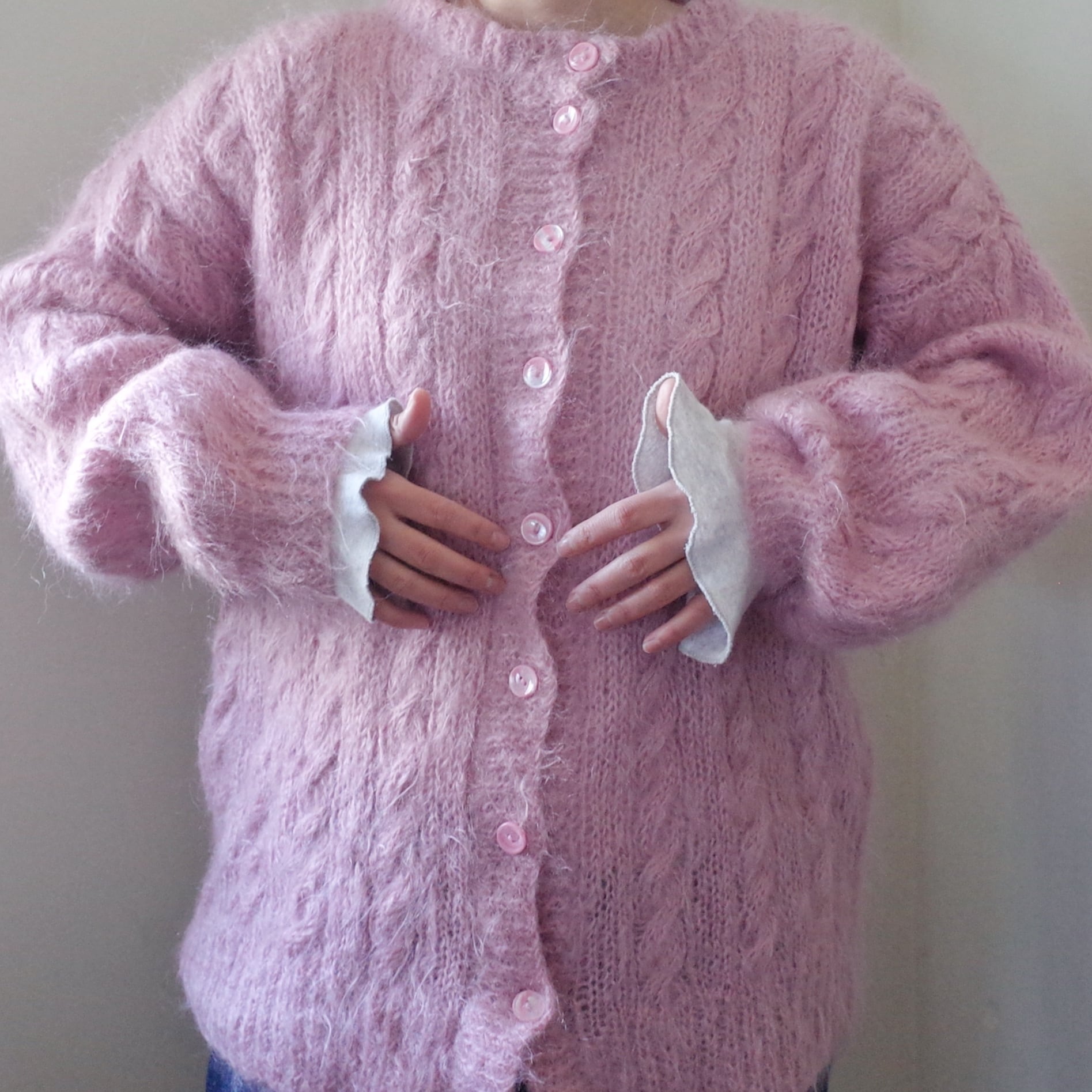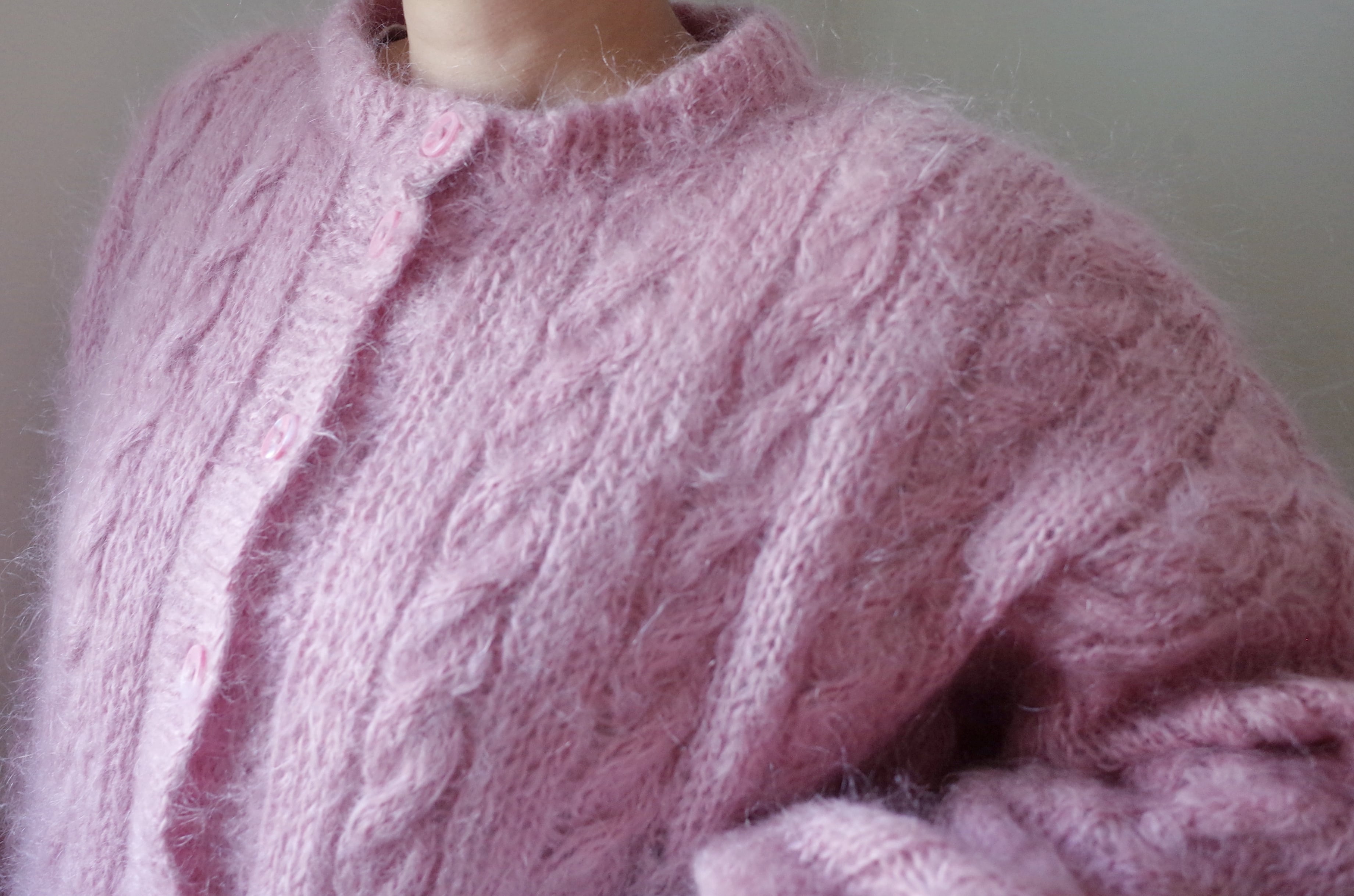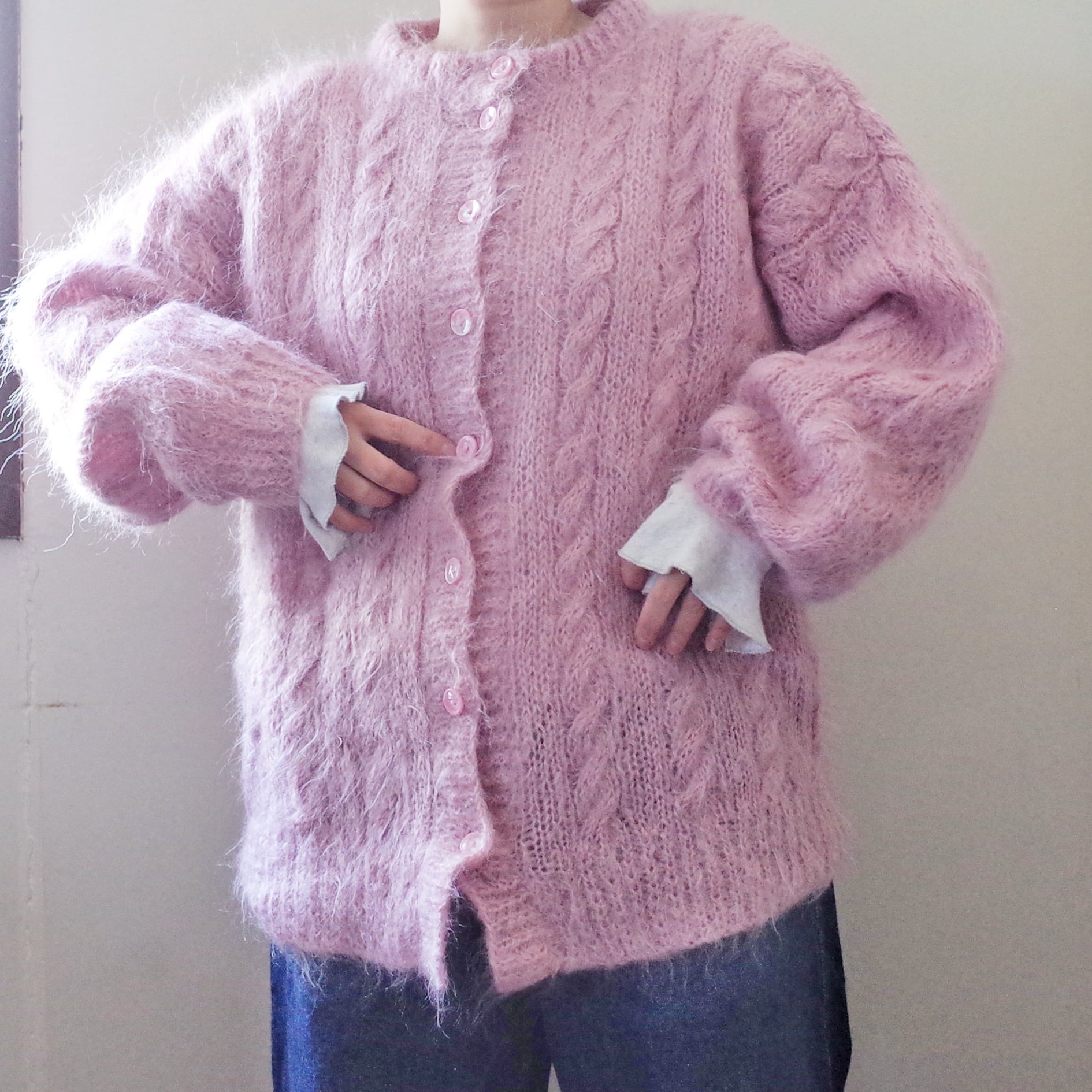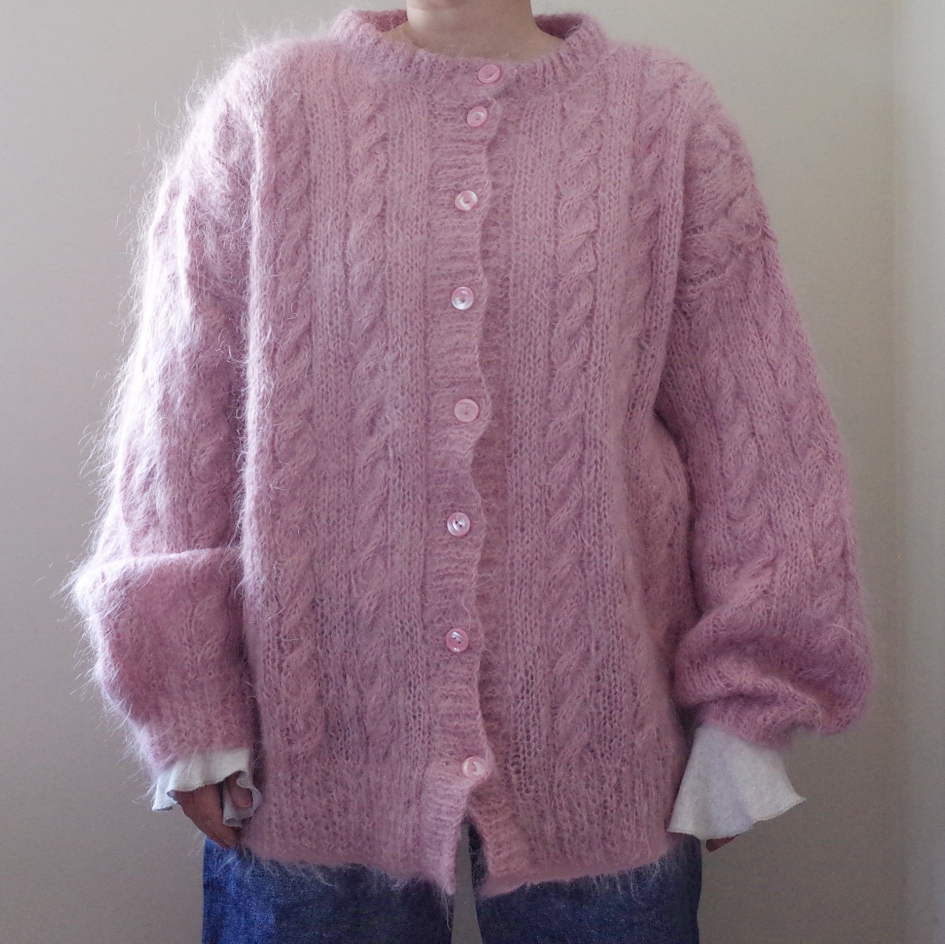 ヨーロッパピンクモヘア手編みカーディガン